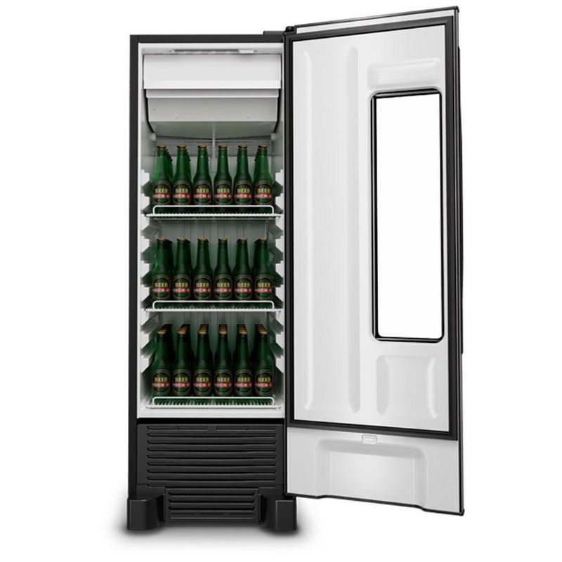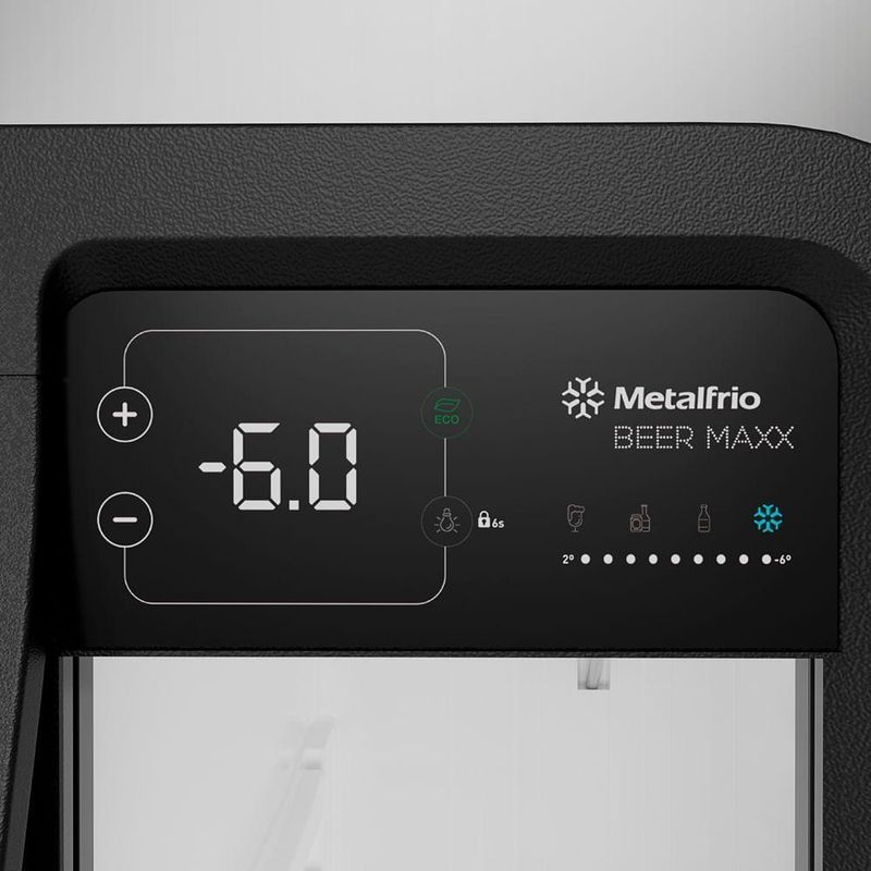 Cervejeira Beer Maxx 250 Vn25t Metalfrio Refrigerador Porta Com Visor 264 Litros Inox 220vCervejeira Beer Maxx 250 Inox 264 Litros VN25TP Metalfrio. Ideal para varandas, terraços gourmet, área de lazer, casas de praia, casas de campo e similares. Sistema de Degelo: Frost Free: degelo automático. Controle de Temperatura: Controlador eletrônico. Faixas de Temperatura: Cervejeira 2°C / -6°C. Prateleiras: 3 prateleiras reguláveis. Porta em cor inox, display touch e puxador ergonômico. Iluminação interna: com lâmpada LED. Sistema de Refrigeração Subzero. Tanque Termoformado. Função Eco Mode. CAPACIDADE: 264 Litros. TEMPERATURA: 2ºC / -6ºC. PORTAS: 1. PRATELEIRAS: 3 (2 reguláveis + 1 grade de fundo). POTÊNCIA: 285W. ARMAZENAMENTO: 294 Latas 269ml, 216 Latas 350ml, 180 Latas 473ml, 108 Garrafas 355ml, 75 Garrafas 600ml e 32 Garrafas 1l. PESO: 67,75Kg. DIMENSÕES EXTERNAS(CxAxL): 52,5x158,5x72,6cm. Com os Selos de Qualidade ISO 9001 e de Gestão Ambiental ISO 14001. Cervejeira Beer Maxx 250 Inox 264 Litros VN25TP Metalfrio é na Atau.Apresentação do Produto -Marca - MetalfrioModelo - Beer Maxx 250Capacidade - 264 LitrosFrente - 52,5cmAltura - 158,5cmProfundidade - 72,6cmTemperatura - 2ºC / -6ºCPeso - 73,65KgPortas - 1 PortaPrateleiras - 2