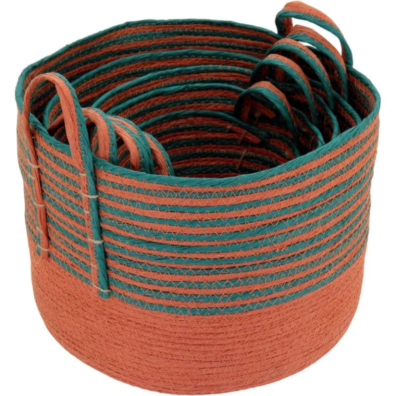 Cesta Fibra Color 5 Peças - GSDecore e organize com estilo!A Cesta Fibra Color é um jogo composto por 5 peças de tamanhos variados, ideais para dar um toque rústico e arrojado à sua decoração. Feitas de fibra vegetal de typha angustifolia linn, essas cestas são leves, versáteis e perfeitas para organizar diferentes ambientes da sua casa.Cada peça possui um design único e funcional:GG: Diâmetro da boca de 35cm e altura de 25cmG: Diâmetro da boca de 31cm e altura de 23cmM: Diâmetro da boca de 27cm e altura de 21cmP: Diâmetro da boca de 23cm e altura de 19cmPP: Diâmetro da boca de 20cm e altura de 16cmEssas cestas são incríveis para decorar salas, quartos, varandas e até mesmo escritórios. Seu estilo único vai se destacar em meio à decoração, proporcionando charme e organização ao ambiente.Lembrando que a recomendação é não lavar, molhar ou armazenar as cestas em locais úmidos. Mantenha-as sempre em ambientes secos para preservar sua durabilidade e beleza.Características:Materiais: Fibra vegetal de typha angustifolia linnMarca: GSCategoria: Caixas Decorativas