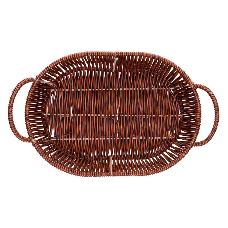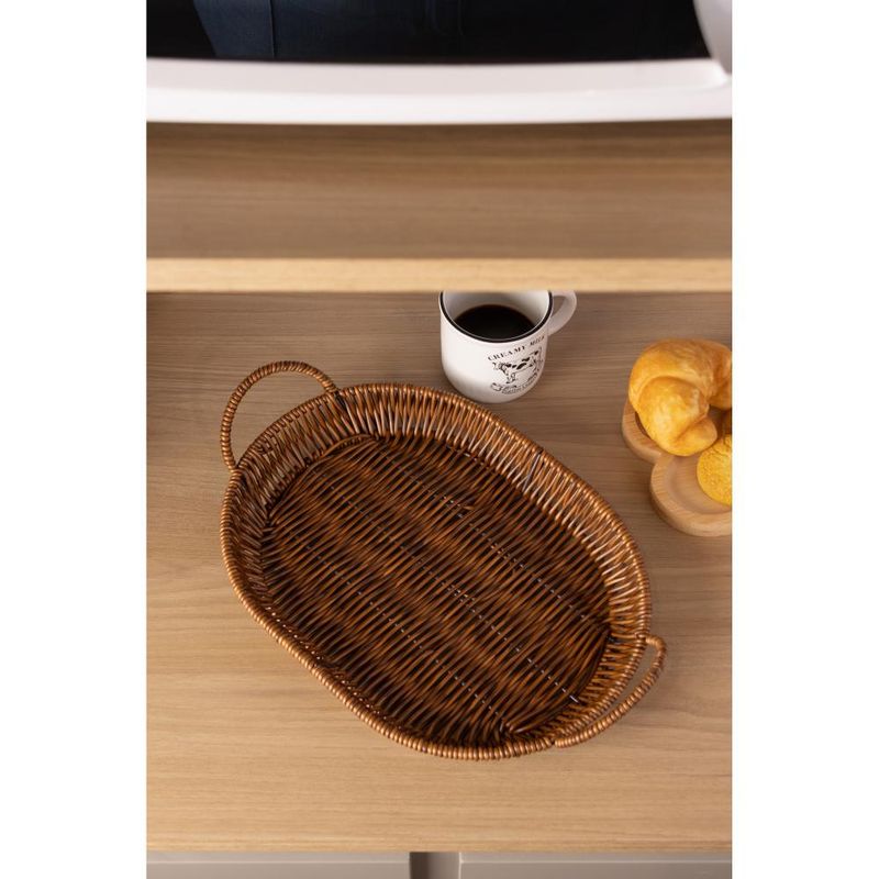 Cesta Oval com Alça Rattan Lyor 29cm x 22cm x 7,5cm Plástico Contém: 1 CestaMedidas Produto: Altura 7,50cm x Largura 22,00cm x Comprimento 29,00cmPeso: 0,20KgLavar com detergente neutro, esponja macia e secar imediatamente. Não lavar em máquinas, não utilizar produtos químico.
