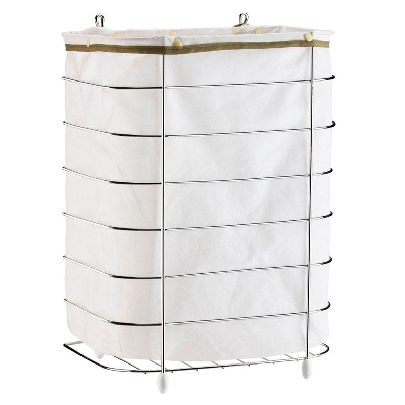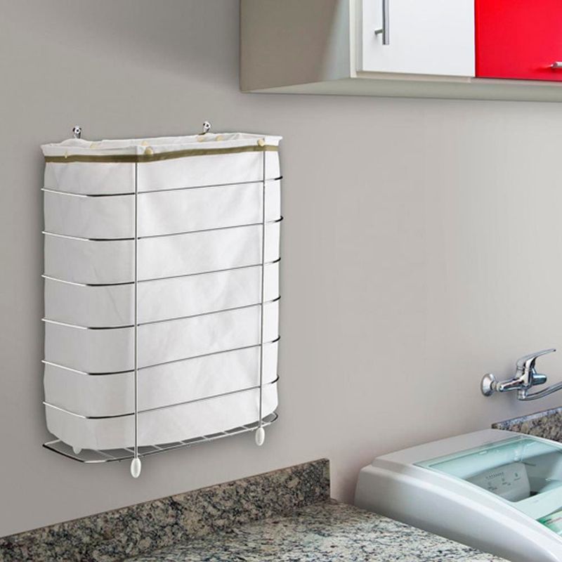 Cesto de Roupa para Parede e Chão Utimil CR483 em Arame Cromado e Tecido Bege