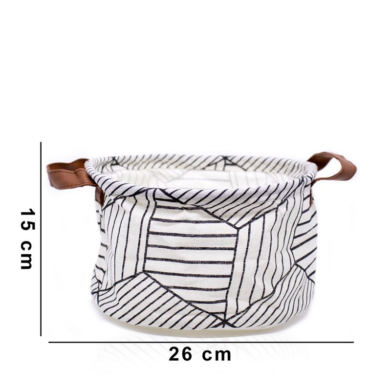 Cesto Decorativo Multiuso Organizador Listas Geométricas Branco 15x26x26 Cm - D'Rossi