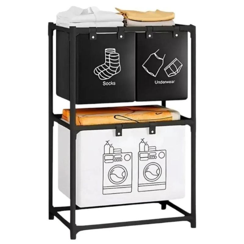Cesto Lavanderia Triplo Estante Metal Roupa Suja 2 Andares Roupeiro 3 Divisorias Organizador Banheiro Multiuso Armario DCesto Triplo de Roupas Sujas com Divisórias – Organização Inteligente para Banheiro e LavanderiaTransforme sua rotina de cuidados com as roupas com o Cesto Triplo de Roupas Sujas. Compacto, resistente e funcional, ele é a solução ideal para quem busca praticidade, organização e mais eficiência no dia a dia.Benefícios que fazem a diferença:Separação Inteligente: 3 divisórias exclusivas que permitem separar roupas íntimas, claras, escuras ou peças pequenas sem esforço.Praticidade no Dia a Dia: economize tempo ao lavar, pois suas roupas já estarão organizadas nos compartimentos corretos.Montagem Rápida e Fácil: estrutura desmontável, montada em minutos, sem ferramentas.Durabilidade e Resistência: tubos de ferro robustos e conectores em plástico PP de alta qualidade garantem firmeza e longa vida útil.Design Funcional: cestos em TNT respirável, com desenhos indicativos para cada divisão, que facilitam a identificação.Medidas Altura: 97 cmLargura: 57 cmProfundidade: 28 cmConteúdo da Embalagem1 Cesto Triplo para Lavanderia (desmontado, fácil de montar)Ideal para banheiros, lavanderias e quartos, o Cesto Triplo de Roupas Sujas otimiza seu espaço, mantém sua casa organizada e torna a tarefa de lavar roupas muito mais simples e prática.Cesto Triplo de Roupas Sujas com Divisórias – Organização Inteligente para Banheiro e LavanderiaTransforme sua rotina de cuidados com as roupas com o Cesto Triplo de Roupas Sujas. Compacto, resistente e funcional, ele é a solução ideal para quem busca praticidade, organização e mais eficiência no dia a dia.Benefícios que fazem a diferença:Separação Inteligente: 3 divisórias exclusivas que permitem separar roupas íntimas, claras, escuras ou peças pequenas sem esforço.Praticidade no Dia a Dia: economize tempo ao lavar, pois suas roupas já estarão organizadas nos compartimentos corretos.Montagem Rápida e Fácil: estrutura desmontável, montada em minutos, sem ferramentas.Durabilidade e Resistência: tubos de ferro robustos e conectores em plástico PP de alta qualidade garantem firmeza e longa vida útil.Design Funcional: cestos em TNT respirável, com desenhos indicativos para cada divisão, que facilitam a identificação.Medidas Altura: 97 cmLargura: 57 cmProfundidade: 28 cmConteúdo da Embalagem1 Cesto Triplo para Lavanderia (desmontado, fácil de montar)Ideal para banheiros, lavanderias e quartos, o Cesto Triplo de Roupas Sujas otimiza seu espaço, mantém sua casa organizada e torna a tarefa de lavar roupas muito mais simples e prática.