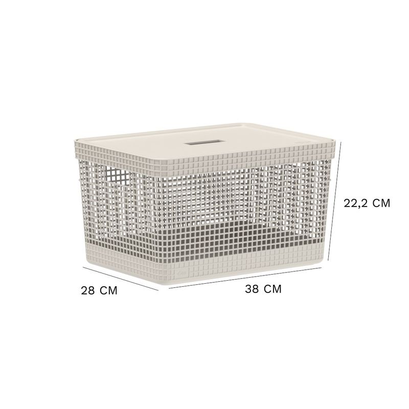 Cesto Organizador com Tampa Grid Ou 20 Litros 38 x 28 x 22,2 cm Detalhes do Produto: A Linha de Cestos Grid foi desenvolvida com um mix perfeito entre conforto, design e funcionalidade. Os cestos possuem diversos tamanhos, são empilháveis e versáteis. São diversas opções com cores neutras e acabamento fosco, que combinam com qualquer ambiente. Podem ser utilizados em closets, cozinhas, lavanderias ou até mesmo na sala de estar para decorar. Sustentabilidade! A Linha Grid é produzida com plástico 100% pós-consumo, proveniente de resíduos coletados do litoral brasileiro, com o objetivo de evitar que esse plástico chegue ao mar ou rios da região. O Cesto Organizador possui tampa de plástico de fácil manuseio. Cuidados: Sugere-se higienizar com sabão neutro e esponja macia, evitando produtos abrasivos no processo de limpeza. Material: Polipropileno (PP) Medidas: 38 cm comprimento x 28 cm largura x 22,2 cm altura Itens inclusos: 1 unidade do Cesto Organizador com Tampa Grid 20 Litros 38 x 28 x 22,2 cm Garantia do fornecedor: 3 meses