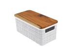 Cesto Organizador Juta de Plástico Resistente Com Tampa de Madeira Capacidade 1,5 Litros Branco
