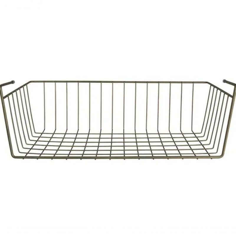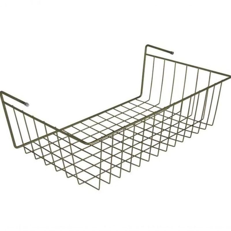 Cesto Suspenso G Para Prateleira Metalizado Oliva BelO Cesto Suspenso Para Prateleira G Verde Oliva Bel é ideal para organização e otimização dos espaços internos em armários e closets, criando um segundo nível em prateleiras e permitindo assim a utilização do espaço superior. O cesto é seguro, prático, durável e removível, sem precisar de fixação nos móveis.Para quem deseja ganhar espaço em sua casa e mais tempo no dia a dia, o Cesto Suspenso Para Prateleira G Verde Oliva Bel é a solução perfeita. Sua versatilidade permite que você use esse organizador em diversos ambientes e armazene diferentes produtos.O Cesto Suspenso Para Prateleira G Verde Oliva Bel é produzido em aço carbono com pintura eletrostática a pó (epóxi), garantindo assim a qualidade e durabilidade do mesmo.Informações importantes:- Estrutura de aço carbono com pintura epóxi- Encaixe para prateleiras de 1,5cm à 2cm de espessura- Suporta até 5kg distribuídos- Não necessita ferramenta para montagemEspecificações TécnicasEstrutura Aço carbono com pintura epóxiObservação Não necessita de ferramenta para montagemInformações Importantes Encaixe para prateleiras de 1,5cm a 2cm de espessuraCor Verde OlivaModelo Cesto SuspensoDimensões aproximadas montado (C x L x A) 46,4cm x 28,5cm x 15,4cmPeso máximo suportado 5kgGarantia 2 anos NA