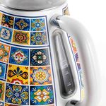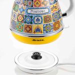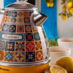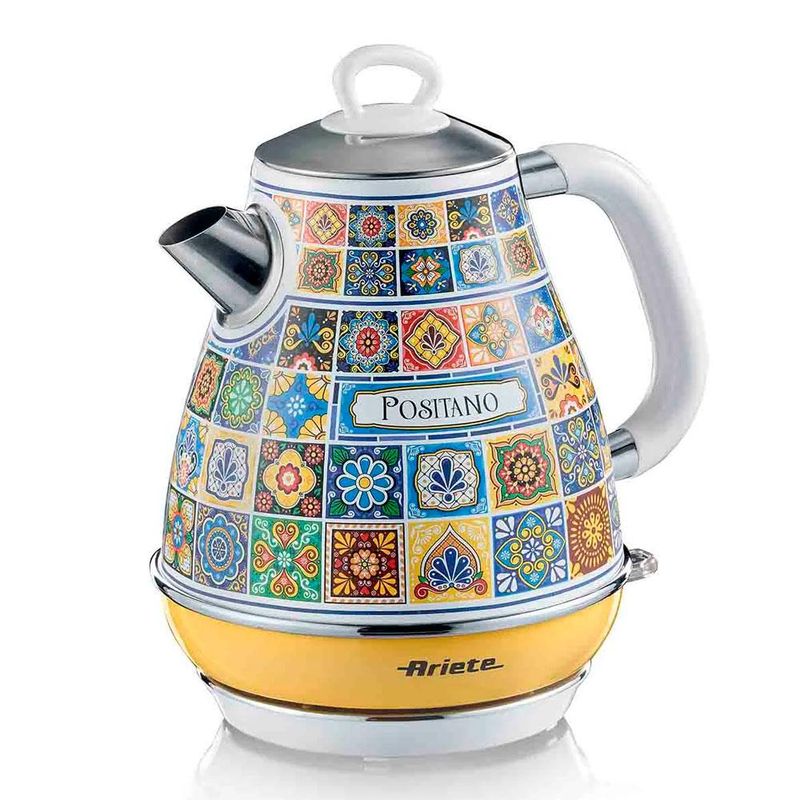 A chaleira elétrica Ariete Positano 2869 é o utensílio ideal para quem busca aquecimento rápido de água, combinado com o charme inconfundível do design italiano retro. Com 1850W de potência e capacidade para 1,7 litro, ela ferve a água em poucos minutos, sendo perfeita para preparar chás, cafés coados, chimarrão e até mesmo agilizar receitas. Pertencente à elegante linha Positano, a chaleira possui um corpo em aço inoxidável na cor bege (ou verde, dependendo do modelo), com acabamentos cromados de alta qualidade que a transformam em uma verdadeira peça de decoração vintage na sua cozinha. Ela eleva o estilo de qualquer bancada. A praticidade e a segurança são prioridades. O aparelho possui desligamento automático quando a água atinge o ponto de fervura (100°C), evitando o consumo desnecessário de energia. A base giratória de 360° facilita o manuseio, permitindo que a jarra seja colocada em qualquer posição. Conta com um útil filtro anticalcário removível e lavável, que retém as impurezas e partículas de calcário da água, garantindo que suas bebidas mantenham o sabor puro e que o interior da chaleira permaneça limpo por mais tempo. O visor do nível de água, acoplado ao cabo, permite um controle visual preciso do volume. Desligamento Automático: Garante segurança ao usuário e economia de energia, desligando o aparelho assim que a fervura é atingida. Design Italiano Vintage: Estética Positano, com corpo em aço inoxidável e acabamentos cromados, unindo durabilidade e charme retro. Potência 1850W: Alto desempenho para ferver grandes volumes de água em tempo recorde. Filtro Anticalcário: Filtro removível que assegura a qualidade da água e a pureza do sabor das suas bebidas. Capacidade Ideal: 1,7 Litro, volume perfeito para atender famílias ou reuniões com facilidade e rapidez. Modelo: 2869 Positano Marca: Ariete Potência: 1850 W Voltagem: 220 V Material: Aço Inoxidável (Corpo) Capacidade: 1,7 Litro Recursos: Base 360°, Desligamento Automático