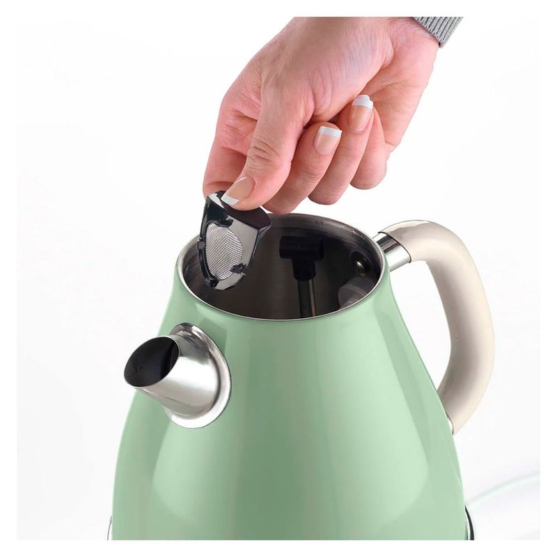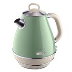 Chaleira retrô, com base 360° sem fio e capacidade de 1,7 litro que se soma à linha vintage, para deixar o café da manhã ou o lanche da tarde ainda mais agradáveis. Chaleira Elétrica em aço inoxidável, desligamento automático e 1500 Wats.CaracterísticasCapacidade: 1,7 LitrosDesligamento AutomáticoTrava na Tampa Base 360ºEspecificações TécnicasModelo: 2869Cor: VerdeMaterial: Plástico e Aço inoxidávelPotência: 1500 W (110V)/1850 W (220V)Consumo: 1,5 Kw/h (110V)/1,85 Kw/h (220V)Voltagem: 110V/220V (Não é bivolt)EAN: 8003705122994 (110V), 8003705115170 (220V)Garantia: 12 mesesDimensões e PesoDimensões do produto sem embalagem (AxLxP): 260x210x200 mmDimensões do produto com embalagem (AxLxP): 305x220x220 mmPeso do produto sem embalagem: 1,11 kgPeso do produto com embalagem: 1,60 kgItens Inclusos01 ChaleiraManualAgente ValidadorProduto possui certificação de segurança compulsória, certificado pela BRA23/00640, organismo acreditado pela CGCRE do Inmetro.