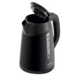 Chaleira Elétrica Britânia BCH06V 1,7L 220VPrepare café, cappuccino, chá, chimarrão, mamadeira, e muito mais de forma rápida e simples. A Chaleira Elétrica BCH06V possui capacidade para 1,7 litro, com sistema de segurança de desligamento automático quando a água entra em estado de fervura. Você ainda conta com sua base removível, jarra com movimento rotativo 360°, filtro de saída, e botão para abertura de tampa, garantindo maior segurança durante o manuseio. Principais Características- Possui desligamento automático, quando a água ferve a chaleira desliga;- Portátil- Pode ser levada à mesa.- Botão Liga/Desliga- Tampa com abertura acionada por botão - Jarra sem fio- Luz indicadora de funcionamento- Desligamento automático;- Capacidade de 1.7L- Jarra com movimento rotativo 360°Observação: Somente faturamos para o nosso consumidor final, ou seja, não faturamos pedidos para CNPJ por este portal de vendas.Especificações TécnicasMarca:BritâniaModelo:BCH06VCor:PretoCapacidade:1,7 LEstado:NovoPotência:1200 WControle de temperatura:NãoMaterial da jarra:Aço escovadoDesligamento automático:SimBase destacável:SimAltura do produto:23,3 cmLargura do produto:20,6 cmComprimento do produto:15,6 cmPeso do produto:0,71 kgAltura com embalagem:22,8 cmLargura com embalagem:17,4 cmComprimento com embalagem:19 cmPeso com embalagem:0,884 kgGarantia:360 Dias