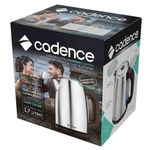 Chaleira Elétrica Cadence 1,7L Aço Inox 127V CEL505-127Proporcionando momentos únicos e muito mais praticidade na hora de esquentar a sua água, a Cadence desenvolveu a Chaleira Elétrica Supreme Control, com controle de temperatura, facilita na hora de deixar a água na temperatura ideal. Com sistema light color e durabilidade do acabamento em inox, a Chaleira Elétrica CEL505 é ideal para qualquer ambiente.A Chaleira Elétrica Supreme Control tem seletor de temperatura, você pode escoher entre 5 configurações diferentes: 50°C, 70°C, 80°C, 90°C e 100°C. Com grande capacidade e graduação de 500ml a 1,7L , permite que você aqueça água para preparar apenas um chá, ou ferva água para adiantar o preparo de sopas e legumes.Chaleiras elétricas já são indispensáveis nas cozinhas brasileiras. Facilitam o preparo de alimentos, ajudam na limpeza e esterilização de objetos e ainda são decoração e harmonia para sua cozinha. Não espere mais para adquirir um produto que tem tudo a ver com a sua casa, conte com a Chaleira Elétrica da Cadence e deixe sua água na temperatura ideal.Especificações Técnicas:- Marca: Cadence- Modelo: CEL505-127 - Tensão: 127V - Cor: Inox- Acabamento: Inox- Controle de temperatura: Sim- Capacidade: 1,7L- Potência: 1200W - Consumo: 1,20kWh - Dimensões [LxAxP]: 22.1 x 23 x 17 cm- Peso: 0,9 kg- Código de barras: 7898615986580- Garantia: 12 meses