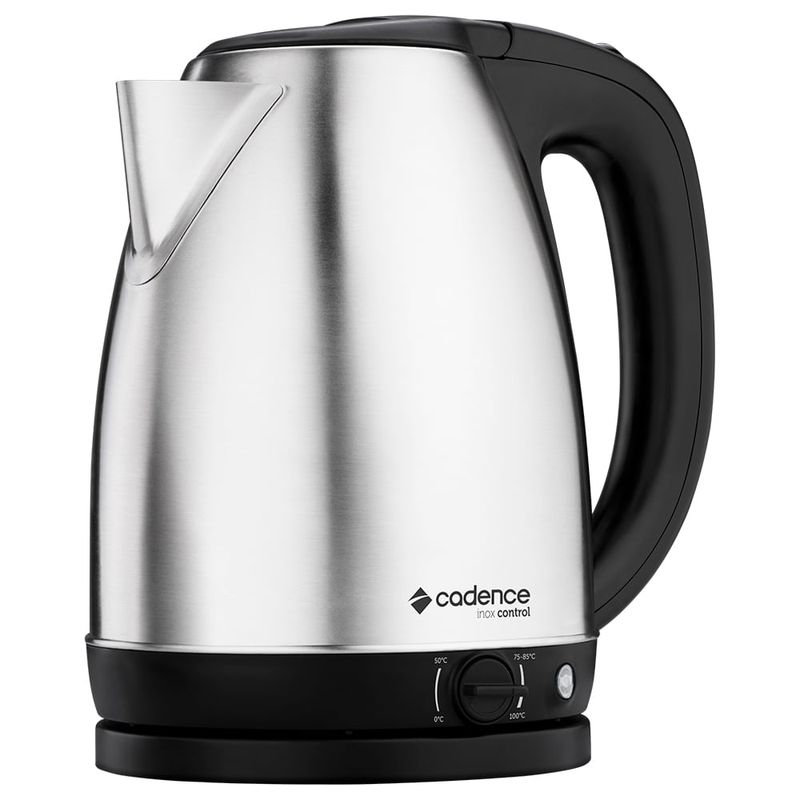 Preparado para ter água quente sem preocupações? Chegou a Chaleira Elétrica Inox Control! Possui controle de temperatura manual, que traz versatilidade para sua cozinha e suas receitas. Além de ter o corpo em inox, garantindo durabilidade e resistência. Novo Design! Com capacidade de 1,8L a Chaleira Inox Control foi desenhada para ser simples e prática na hora de usar. Basta colocar na base e selecionar a temperatura, após aquecer é só retirar da base e levar direto para mesa. A A Chaleira Elétrica Cadence é um produto feito em INOX. Isso torna a chaleira mais DURÁVEL, mais RESISTENTE e além de tudo isso, não pega cheiro. Controle de temperatura manual! A Chaleira Elétrica Inox Control possui controle manual de temperatura. Assim, você tem mais precisão ao preparar suas receitas. O controle que varia de 0C a 100C de temperatura. Temperatura Ideal para o Chimarrão 75-85C Alta Potência! Muito potente com 120W (127V) e 1850W (220V) de potência. AQUECE rapidamente sua água. Selo de Segurança OCP SGS