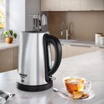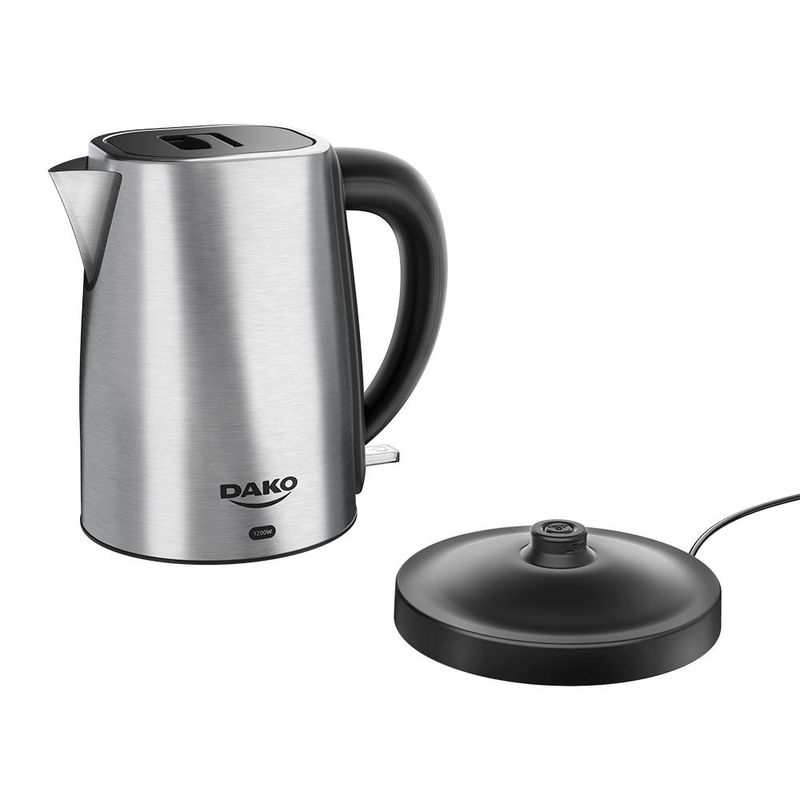 Na correria do dia, é raro termos momentos só nossos. Então, por que não aproveitar uns minutinhos e esquentar água enquanto escolhe o sabor do chá?A Chaleira Dako é feita para esses e outros momentos em que se precisa de água quente bem rapidinho. Com 1,7 litros de capacidade, é perfeita para qualquer ocasião, desde o chazinho da tarde até o café com a família no domingo.E o melhor: você não precisa se preocupar com acidentes. Ela desliga automaticamente, garantindo total segurança. Sem falar da base antiderrapante, que evita escorregões, e do guarda-fio que mantém sua cozinha organizada.Escolha a quantidade exata de água pelo indicador de nível, ligue e aguarde. Com um design elegante e moderno, a jarra em inox é livre de BPA, tornando este produto essencial na sua rotina. Na hora de comparar, você vai perceber que a Dako surpreende além dos fogões.Atributos e benefícios- Jarra em inox - livre de BPA.- Do chazinho da tarde ao café em família - Capacidade de 1,7 litro.- Piscou esquentou - Água fervendo bem rapidinho.- Muito segura - Desliga automaticamente, impedindo que a água ferva até secar.- Defina a quantidade exata - Com o indicador de nível.Ficha TécnicaMarca: DakoCor: InoxVoltagem: 127V e 220VPotência: 1200W - 127VPotência: 1800W - 220VTipo de acabamento: InoxVolume: 1,7 LitrosDesligamento automático: SimIndicador de nível: SimBase 360°: SimControle STRIX: Sim (U1621)Largura: 15,7 cmAltura: 23,1 cmProfundidade: 22,2 cmPeso: 0,95 kgTamanho do cabo: 0,8 mPlug: 10AGarantia: 12 Meses de garantia contra defeitos da fabricação.