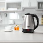 A Chaleira Elétrica Fama 2L Jarra em Inox FCH20A é a escolha ideal para quem busca praticidade, segurança e eficiência no preparo de bebidas quentes no dia a dia. Com capacidade de 2 litros, ela permite aquecer a quantidade ideal de água para toda a família ou para momentos especiais, otimizando tempo e facilitando a rotina. Seu design funcional aliado ao acabamento em inox garante maior durabilidade, resistência e um visual moderno que combina com qualquer cozinha.Pensada para oferecer mais tranquilidade durante o uso, a Chaleira Elétrica Fama conta com desligamento automático e sistema de segurança contra superaquecimento, evitando riscos e proporcionando um uso mais seguro. A jarra sem fio com movimento rotativo de 360 graus oferece total liberdade de manuseio, sendo prática tanto para destros quanto para canhotos, além de facilitar o serviço à mesa conforme a necessidade do usuário.Com potência eficiente de 1150W (127V) ou 1500W (220V), a Chaleira Elétrica Fama FCH20A aquece a água de forma rápida e eficaz. Recursos como botão para abertura da tampa, luz indicadora de funcionamento e suporte para armazenamento do fio tornam o uso ainda mais simples e organizado. Funcional, segura e versátil, a Chaleira Elétrica Fama 2L Jarra em Inox FCH20A transforma pequenos momentos da rotina em experiências mais confortáveis e práticas.Capacidade da jarra de 2LJarra com acabamento em InoxPotência: 1150W (127V) / 1500W (220V)Desligamento automáticoSegurança contra superaquecimentoJarra sem fioGiro 360 graus sobre a baseBotão para abertura da tampaLuz indicadora de funcionamentoSuporte para armazenamento do fio.
