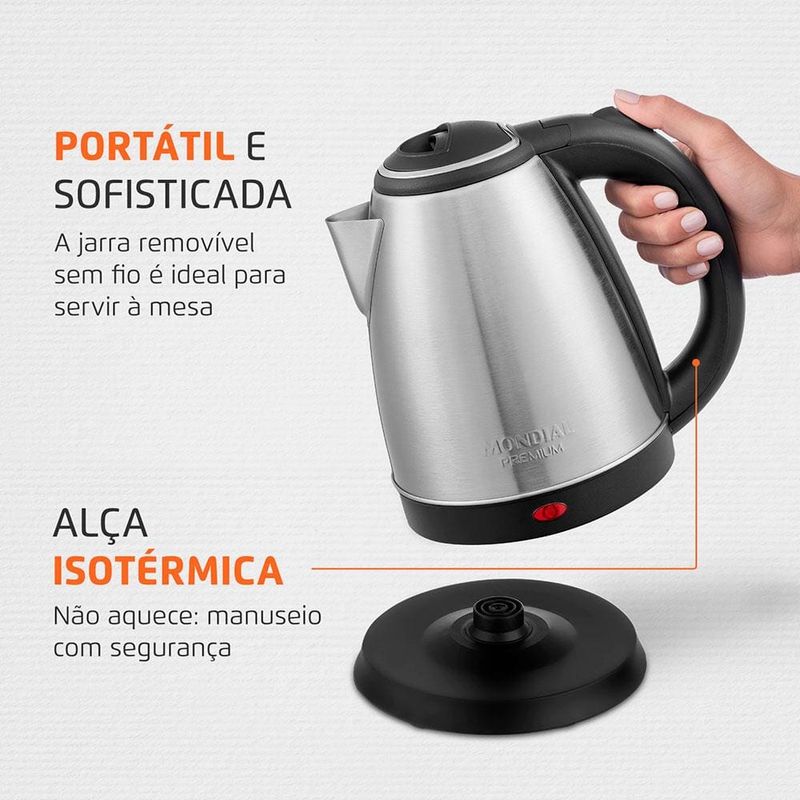 Chaleira Elétrica Mondial Pratic CE-06 com Capacidade de 2L - Inox