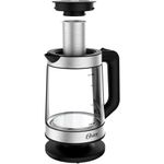 A Oster apresenta um lançamento para quem gosta de ter praticidade no dia a dia: Chaleira Elétrica com infusor para chá. Muito mais benefícios em 1 só produto. A nova chaleira elétrica 2 em 1 possui um infusor para você poder fazer seu chá favorito diretamente na chaleira. Perfeita para utilizar durante o inverno, quando os chás auxiliam na imunidade durante o frio. Sistema Light color: O LED acende automaticamente quando a chaleira for ligada e sua luz avisa que o aquecimento foi iniciado. Quando completar a fervura ou se você desligar o produto antes, a luz apagará. A novidade mais quente do mercado: Água fervida com agilidade. E o seu chá quentinho preparado muito mais rápido. A nova Chaleira Elétrica da Oster é muito mais higiênica: com o seu copo de vidro, ela tem capacidade de 1,8L e não permite alteração no sabor da água. Desligamento Automático: É muito mais segurança para você com o sistema de desligamento automático, ele garante a sua proteção contra superaquecimento, evitando acidentes. Saiba como aproveitar ao máximo a sua nova Chaleira Elétrica 2 em 1 Oster. A Chaleira Elétrica Oster é uma grande aliada para dar agilidade na rotina de quem cozinha. Tenha água quente prontinha de forma muito mais rápida e segura enquanto preparar suas receitas. Com seu infusor para preparar chá, a nova Chaleira Elétrica Oster é muito mais que uma chaleira. Tenha atenção com as especificidades de cada folha e aproveite o melhor dela: Para aproveitar ao máximo os nutrientes do chá, sempre confirme a indicação de preparo dele antes de iniciar o processo de fervura, pois algumas folhas não devem aquecer acima de 80 graus, por exemplo. Use sempre água filtrada. Os chás por infusão, como os de saquinho, por exemplo, devem ser colocados no infusor da chaleira após a água ferver. Deixe descansar pelo tempo indicado na caixinha do chá, o que pode variar de 3 a 7 minutos. Os chás que precisam se cocção deve ser colocados no infusor junto com água para ferver. Siga sempre a orientação da embalagem do seu chá. Um objeto de decoração: Com um design moderno e atual, a nova Chaleira Elétrica Oster é mais do que uma chaleira. E combina com a sua cozinha. Selo de Segurança OCP SGS.