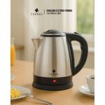 Chaleira Elétrica Tronos KL1803 1,8 Litros 1250W 110VA Chaleira Elétrica Tronos 1,8 Litros é uma escolha confiável e eficiente para preparar suas bebidas quentes preferidas com praticidade e segurança, além de oferecer facilidade no cozimento de alimentos e pratos diversos, proporcionando uma experiência culinária mais conveniente e agradável.Características:Tampa: Fabricada em plástico para garantir durabilidade e facilidade de uso.Material: Construída em aço inoxidável de alta qualidade, oferecendo resistência à corrosão e longa vida útil.Sistema Automático: Equipada com sistema de ligar/desligar automático para maior segurança e conveniência.Material do Corpo: Feita com material polipropileno resistente, proporcionando durabilidade e segurança durante o uso.Controlador Duplo: Incorpora controlador duplo para um desempenho eficiente e confiável.Plugue: Possui plugue de cobre para uma conexão segura e estável.Capacidade e Potência: Capacidade de 1,8 litros, operando com 127V e potência de 1250W ou 220V e potência de 1500W (produto não é bivolt), adequada para diversas necessidades de preparação de bebidas quentes.Especificações:Modelo: KL1803Capacidade: 1.8 LitrosVoltagem e Potência: 127V~60Hz, 1250WMaterial: Inox e PPSistema Liga/desliga automáticoBotão de acionamentoLuz de funcionamentoBase de contato separado com rotação 360°Alça térmicaBotão para abertura de tampa.ATENÇÃO: PRODUTO NÃO É BIVOLTCHALEIRA ELETRICA TRONOS KL1803 1,8 LITROS 1250W 127V