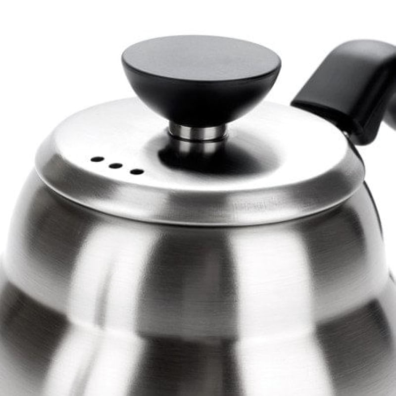 Uma das peças mais fundamentais para o bom preparo de café e usada tanto por baristas profissionais quanto por entusiastas, a chaleira Buono foi projetada com um bico de saída mais fina, chamado de "pescoço de ganso", que permite controlar o fluxo contínuo da água quente enquanto a despeja. Seu formato de colméia ajuda a conservar a temperatura da água por mais tempo. Possui acabamento em aço inoxidável com design clássico e elegante, muito procurada pelos amantes de café. Pode ser levada ao fogão a gás ou elétrico. A Chaleira Hario Buono 1200ml brilhará em seu café! Características gerais: - Pode ir direto ao fogão a gás ou elétrico - Versão 1200ml - Material: Aço inoxidável - Possui tampa com pegador achatado para maior facilidade no manuseio - Formato em colmeia que preserva a temperatura da água por mais tempo - Possibilita fluxo contínuo de água graças ao bico de "pescoço de ganso" Sobre a Hario: A empresa dedica-se ao design, produção e venda de vidro resistente ao calor desde que foi fundada em 1921. Em 1964, expandiu a produção para itens domésticos, começando com o sifão de café. Também começou a produzir lentes para faróis automotivos em 1980. Hoje, continua a fabricar uma variedade de itens, de utensílios de cozinha com segurança para microondas e em especial utensílios para café e chá.