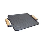 Chapa Bifeteira Dupla Face de Ferro Alça Madeira 23x28cm A chapa de ferro fundido dupla-face tem o calor distribuído por toda a superfície e não somente no fundo fazendo com que o alimento cozinhe de maneira uniforme, ela pode ser utilizada diretamente sobre a chama do fogão a gás, a lenha, elétrico ou de indução, também em churrasqueiras. Pode ser utilizada dos 02 lados, sendo que um dos lados tem a chapa toda lisa e o outro lado a chapa é estriada deixando a carne no ponto que você gosta. Ideal para o preparo de grelhados como bistecas, bifes, legumes, vegetais entre outros. Especificações Técnicas: Material: Ferro fundido. comprimento: 35,8cm. Tamanho: 23x28cm. Largura: 22,8cm. Peso: 2,870Kg. Itens Inclusos: Chapa Bifeteira Dupla Face de Ferro Alça Madeira 23x28cm. Código: 0286-RIG. Produto plataforma Plast.