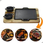 Chapa Ferro 22x22 C Molheira E Suporte De Madeira PretoConjunto de Chapa de Ferro Fundido com 2 Molheiras e Suporte de Madeira: Sabor que Permanece Quente, Qualidade que PerduraApresentamos o Conjunto de Chapa de Ferro Fundido Santana, acompanhado por 2 molheiras e um suporte de madeira, uma combinação de excelência projetada para levar a mesa não apenas comida, mas uma experiência gastronômica inesquecível.MEDIDAS:Chapa 22cm x 24cmSuporta madeira 35cm x 26cmMelheira: 8cm de diâmetro x 4cm Altura Capacidade: 110 ml Características Distintas:Excelente Qualidade para Servir à Mesa: Desenvolvido com um padrão de qualidade excepcional, é a escolha ideal para levar diretamente à mesa com estilo e confiança.Versatilidade para Bares e Restaurantes: Amado por bares e restaurantes, este conjunto é reconhecido por sua resistência, boa apresentação e capacidade de manter os alimentos quentes por longos períodos.Resistência que Encanta:Adaptável a Todos os Tipos de Fogões: Utilize diretamente sobre fogões a gás, a lenha, elétricos, a álcool e até mesmo em churrasqueiras, proporcionando flexibilidade e praticidade.Durabilidade Imbatível: Produtos Santana são sinônimos de durabilidade, garantindo um investimento que perdura ao longo do tempo.Vantagens Inigualáveis dos Produtos Santana:Contribuição para uma Alimentação Saudável: A chapa de ferro fundido permite um cozimento uniforme, mantendo os alimentos aquecidos por mais tempo, promovendo uma alimentação mais saudável.Economia Energética: Economize até 35% da fonte de calor na hora de cozinhar, oferecendo eficiência energética e pratos incrivelmente saborosos.Transferência de Porcentagens de Ferro: Proporciona não apenas sabor, mas também uma transferência de porcentagens de ferro para os alimentos, enriquecendo sua dieta. Este é mais que um produto, é um convite para elevar sua prática culinária. Invista nos produtos Santana e experimente a garantia de qualidade, eficiência e sabor que transformarão suas receitas.