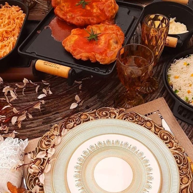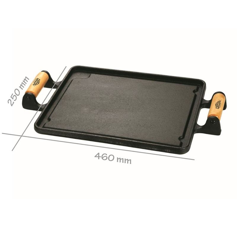 Chapa Lisa Retangular Ferro Alça Madeira PanelaMineira 46x25 A Chapa Lisa Retangular Alça de Madeira da Panela Mineira possui um design moderno, com sua base toda lisa e canaletas nas bordas que permitem o escoamento da gordura da peça que está sendo cozida. Ideal para preparar fritar, selar e grelhar carnes, legumes, peixes e outros alimentos, de maneira prática e eficiente. Sua excelente distribuição e retenção de calor, característico do ferro fundido, mantém os alimentos aquecidos por muito mais tempo, além de enaltecer seus sabores e aromas. Onde usar a Chapa: Pode ser utilizado em fogões a gás, a lenha, elétricos, cooktops de indução e vitro-cerâmicos. A alça de madeira não permite que o produto seja levado ao forno, churrasqueira ou fogo de chão. Orientação de Uso e Conservação:Antes do primeiro uso: Lave com água e sabão, seque bem com um pano e leve ao fogo para remover toda a umidade. Já vem pronta para uso, então não precisa ser curada. Guarde em um local seco. Após cada uso: Lave com água e sabão, usando uma esponja ou escova para remover todos os resíduos de alimentos. Se restarem resíduos, ferva água com um pouco de detergente para soltá-los. Pintura: Revestimento atóxico que garante durabilidade e proteção prolongada, sem causar nenhum dano à saúde. Características Técnicas e Medidas: Linha: Bares e Restaurantes.Material: Ferro Fundido.Comprimento: 46cm.Modelo: Retangular.Alças: Madeira.Largura: 25cm.Altura: 5cm.Chapa: Lisa.Peso: 5,2Kg. Itens Inclusos: 01 Chapa Lisa Retangular Alça Madeira Panela Mineira 46x25cm. Código: 744PMProdutoLojaPlast.