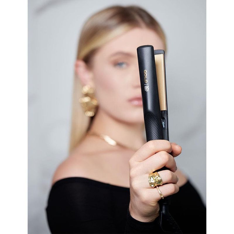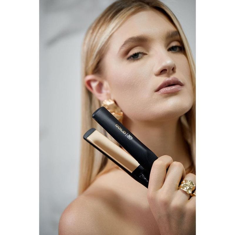 Brilho e reconstrução para o seu cabelo!Os patins da prancha Gold Ion são feitos com a exclusiva tecnologia Essential Oil, ativada com o calor do produto, que nesta versão traz o óleo de Argan: muito conhecido entre os profissionais cabeleireiros como o ouro líquido, ele é rico em ácidos graxos, ômega 9 e VITAMINA E, sendo assim um poderoso antioxidante, que promove hidratação e nutrição profunda para os fios, combate o envelhecimento e protege dos efeitos negativos do calor.Já a tecnologia 3D therapy proporciona uma alta emissão de íons negativos, que tratam o cabelo de dentro pra fora, reconstruindo sua estrutura molecular e fechando a cutícula do fio; resultando em um efeito antifrizz e trazendo mais brilho e reconstrução para os fios. Possui 220°C/ 430°F de temperatura, ideal para uso no dia a dia. Pequena, leve e ergonômica, seu design foi pensado tanto para alisar como também modelar cachos, seu cabo giratório traz maior versatilidade e facilidade para o uso. Óleos essenciais, brilho e proteção para todos os cabelos!