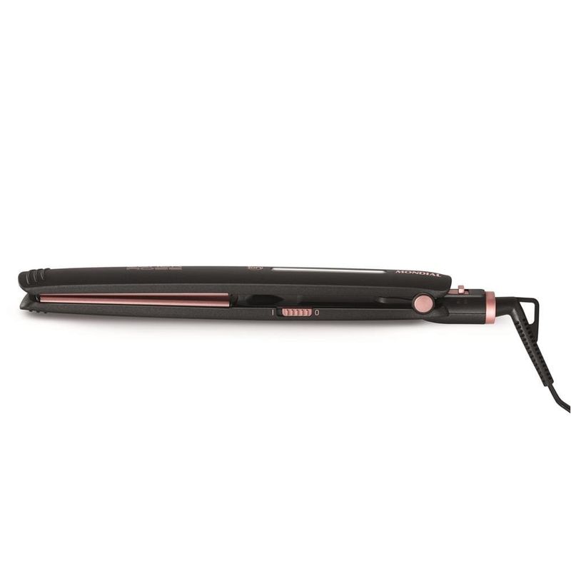 A prancha é um acessório ideal para finalizar e dar aquele acabamento perfeito, de acordo com o seu estilo e mudar o visual sempre que quiser. A Prancha Mondial Black Rose P-27 tem chapas de cerâmica com tourmaline, garantem cabelos com liso intenso, com mais brilho e sem frizz. A tecnologia Protect Care permite um condicionamento iônico e aquecimento controlado que protegem os fios, além disso, as chapas são flutuantes, com fácil adaptação às mechas para um deslizar suave e alisamento uniforme. Moderna, bonita e fácil de usar, seu cabo giratório 360° auxilia nos movimentos durante o uso, com lâmpada led que indica o funcionamento e trava, itens que garantem segurança. O acabamento em soft touch proporciona toque delicado ao produto e suavidade na pegada, para você usar o tempo necessário sem cansar as mãos.