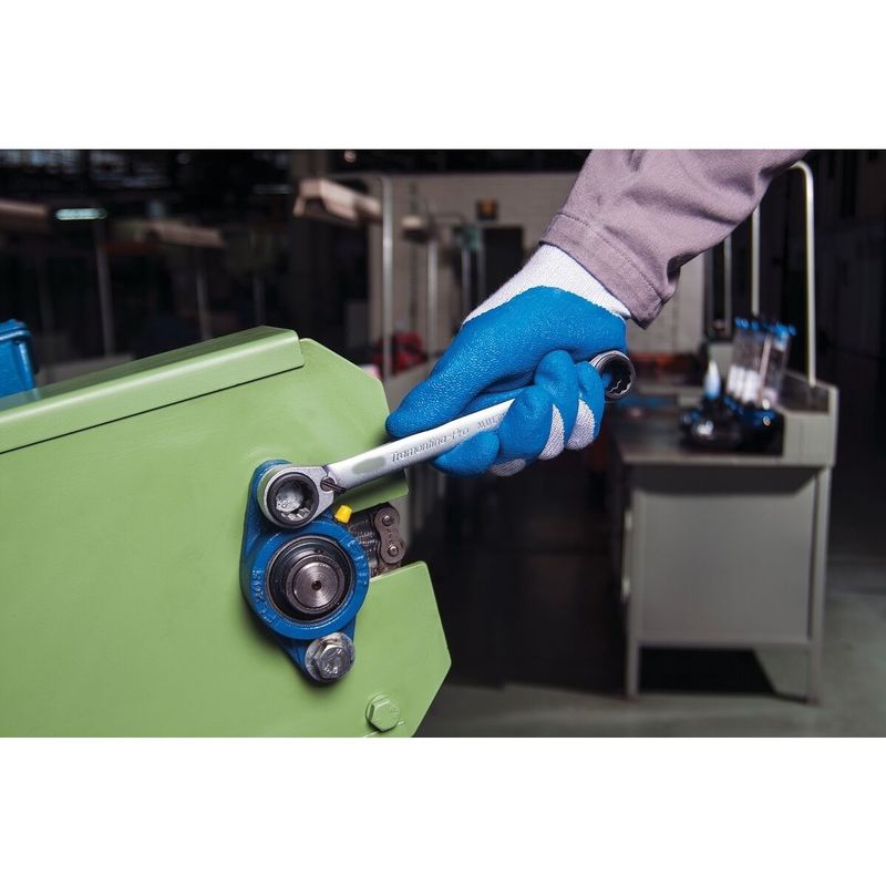 Chave com Catraca 4 Bocas 13x15x17x19 mm Tramontina PRO: Agilidade e Versatilidade A Chave com Catraca 4 Bocas da linha Tramontina PRO é a solução ideal para profissionais e entusiastas que buscam eficiência e praticidade em seus trabalhos. Com um mecanismo de catraca de 76 dentes, esta chave permite apertar e soltar parafusos com muito mais rapidez e facilidade do que as chaves convencionais, reduzindo o tempo de execução das tarefas. Sua construção robusta em aço ligado com cromo vanádio (Cr-V) garante alta resistência e durabilidade, mesmo sob uso intenso. Além disso, a catraca fosfatizada reversível oferece maior controle e segurança durante o manuseio. Com quatro encaixes diferentes (13mm, 15mm, 17mm e 19mm) em uma única ferramenta, você terá mais opções de aperto com menos peças, otimizando seu kit de ferramentas e economizando espaço. Invista na qualidade e desempenho que só a Tramontina PRO pode oferecer e diga adeus aos apertos difíceis! Especificações Número de Bocas: 4 Tamanhos das Bocas: 13 mm, 15 mm, 17 mm, 19 mm Número de Dentes da Catraca: 76 Material: Aço ligado com cromo vanádio (Cr-V) Acabamento: Cromado e Catraca Fosfatizada Torque máximo (N.m): 13 mm = 107; 15 mm = 150; 17 mm = 201; 19 mm = 261 Itens Inclusos Chave com Catraca 4 Bocas 13x15x17x19 mm Tramontina PRO Indicações de Uso Ideal para montagem e desmontagem de móveis, equipamentos e estruturas metálicas. Perfeita para reparos em automóveis, motocicletas e bicicletas. Excelente para uso em oficinas mecânicas, construção civil e manutenção industrial. Perguntas Frequentes (FAQ) Pergunta: Qual o material da chave?Resposta: A chave é fabricada em aço ligado com cromo vanádio (Cr-V), garantindo alta resistência e durabilidade. Pergunta: A catraca é reversível?Resposta: Sim, a catraca é fosfatizada e reversível, permitindo apertar e soltar parafusos com facilidade. Pergunta: Essa chave possui garantia?Resposta: Garantia legal: 90 dias