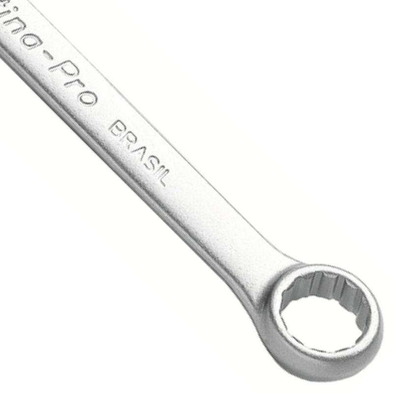 Informações Gerais: Cabeça usinada. Pescoço curto. Abertura da boca calibrada. Acabamento cromado. DIN 3113. ISO 7738. As chaves de aperto são produzidas em aço ligado com cromo vanádio (Cr-V), e apos submetidas a testes rigorosos de torque para atender a norma DIN 1711-1. O teste de dureza é realizado em vários pontos para assegurar a resistência ao desgaste da chave durante o uso ininterrupto. Afrouxar e apertar parafusos e porcas sextavadas e quadradas. As ferramentas são produzidas e testadas conforme normas específicas. Recomendações de Uso: Use óculos, luvas e outros equipamentos de proteção individual (EPIs) de acordo com a tarefa a ser executada. Não golpeie as chaves, a não ser que sejam projetadas para este fim. Sempre utilize uma chave de bitola correta para cada parafuso ou porca para que não haja folga, pois isso danifica a chave e o parafuso. Mantenha a chave limpa para um melhor agarre, pois usá-la suja com graxa ou óleo pode causar acidentes. Não use tubos ou extensões para obter mais torque. Não altere a forma original das chaves. Respeite o torque estabelecido por norma para cada tamanho de chaves. Use a chave perpendicular ao eixo do parafuso e/ou porca. Isto aumenta a vida útil da ferramenta e torna a operação mais segura. Armazene em local limpo e seco.SKU: 15016690