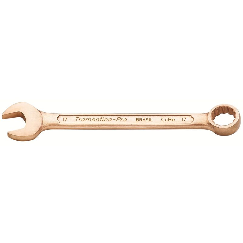 Chave Combinada Cobre-berílio 29 mm Tramontina PRO Tramontina - Chave Combinada Cobre-berÃlio 29 mm Tramontina PRO Antifaiscantes, anticorrosivas e não ferromagnéticas. Trabalhar em áreas de risco de explosão e fogo requer o máximo de proteção e segurança ao usuário. As ferramentas antifaiscantes da Tramontina PRO não geram faÃsca quando golpeadas ou utilizadas, não são ferromagnéticas e resistem à corrosão. A liga de cobre-berÃlio usada nas ferramentas de segurança da Tramontina PRO possui resistência mecânica superior a outras ligas antifaiscantes disponÃveis no mercado. A Tramontina PRO pode oferecer tamanhos e itens especiais além dos modelos que estão em linha. Um diferencial importante da linha de ferramentas antifaiscantes em cobre e berÃlio Tramontina PRO é sua durabilidade. Quem é PRO usa. Forjada em liga de cobre-berÃlio e temperada.Bocas usinadas e calibradas.Pescoço curto.Dureza: 35-40 HRC.A liga de cobre-berÃlio, usada nas Ferramentas de Segurança Tramontina PRO, possui resistência mecânica superior a outros materiais disponÃveis no mercado.Ferramentas especiais: A Tramontina PRO pode oferecer tamanhos e itens especiais. Para mais informações, acesse tramontina.com.br/pro e envie sua solicitação.As ferramentas são produzidas e testadas conforme normas especÃficas. Cuidados com o produto Use óculos, luvas e outros equipamentos de proteção individual (EPIs) de acordo com a tarefa a ser executada.Não lixar, usinar ou fundir as ferramentas de cobre-berÃlio (CuBe) para evitar exposição a vapores e partÃculas de berÃlio presentes na liga metálica.Sempre utilize uma ferramenta de bitola adequada ao parafuso ou porca.Não use tubos ou outras barras extensoras para obter mais torque. Ao aumentar a distância da aplicação da força gera-se mais torque no parafuso ou porca e na ferramenta, podendo quebrar ambos.Ferramentas em cobre-berÃlio são incompatÃveis com o gás acetileno.Armazene em local limpo e seco. Garantia Garantia total contra vÃcios ou defeitos de fabricação. - - Características Gerais do Produto: Garantia: • 3 Meses