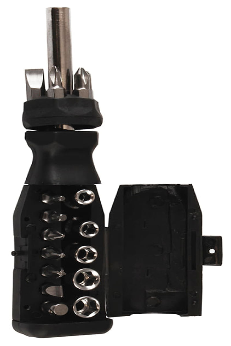 CHAVE DE FENDA 18 EM 1 - Dimensões da Peça: - Cabo: 16,5 x 3,6 x 2,9cm - Adaptador de Soquete: 2,4 x 7,2 x 7,2cm - Soquetes: 1,9 x 1,1 x 1,1cm - Pontas Fendas: 2,4 x 6,9 x 6,9cm - Pontas Hex: 2,4 x 6,9 x 6,9cm - Pontas Torx®: 2,4 x 6,9 x 6,9cm - Pontas Pozi®: 2,4 x 6,9 x 6,9cm - Dimensões da Embalagem: 11,5 x 2,7 x 24,5cm - Quantidade Inner: 50 Peças - Dimensões Inner: 31 x 26,8 x 30cm - Quantidade Master: 100 Peças - Dimensões Master: 54 x 33 x 33,5cm - Material: Aço carbono, ABS - Cor: Cabo preto - Tipo de Embalagem: Blister - Marca: Western - Origem: China - Contém 1 cabo com 18 pontas: - 1 Cabo. - 1 Adaptador de Soquete. - 5 Soquetes: 4 mm - 5 mm - 6 mm - 7 mm - 8 mm. - 12 Pontas: fenda - 4 mm - 5 mm - 6 mm - 7 mm Hex: - H1 - H2 - H3, Torx®: - T15 - T20, Pozi®: - P1 - P2 - P3. - Cuidados: - Não utilize em aparelho energizados. Ferramenta não isolada. - Para reduzir o risco de lesões, Sempre use adequadamente equipamentos de proteção necessáGarantia do produto: 90 dias de garantia de acordo com o Código de Defesa do Consumidor + a Garantia do Fabricante