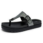 Chinelo Feminino Flatform Preto Brilhos Tanara T8134-0001 O Chinelo Tanara Flatform Preto com Brilhos é a escolha perfeita para quem deseja combinar conforto, estilo e sofisticação. Com sola flatform tratorada de 3,50 cm, este slide oferece uma elevação sutil, adicionando um toque moderno ao visual. O destaque deste modelo são as fivelas metalizadas na parte superior, que conferem um toque de elegância e diferencial ao calçado. Além disso, a aplicação de brilhos adiciona um toque de sofisticação e glamour, tornando este chinelo uma opção versátil para o dia a dia e momentos de lazer. Seja para passeios descontraídos ou encontros com amigos, este slide é uma escolha certa para quem valoriza conforto e moda.