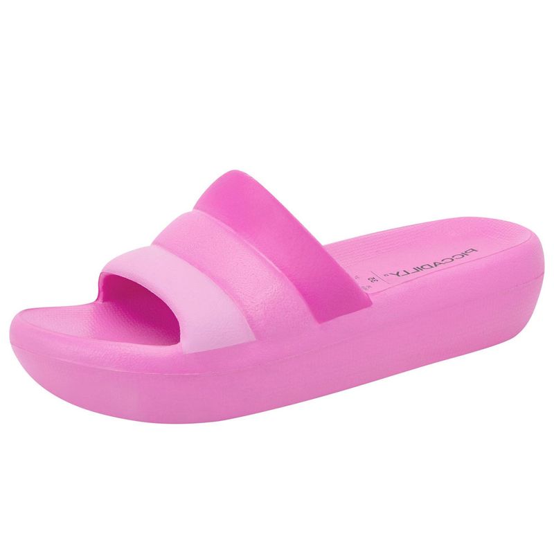 Chinelo Feminino Slide Marshmallow Degradê Magenta Piccadilly 222001 Calçar conforto nunca foi tão gostoso. O Tamanco Marshmallow é assim como o doce: ultraleve, colorido e muito flexível. Perfeito para deixar sua rotina mais descomplicada. Eles podem ser usados dentro ou fora de casa, seja nos momentos de descanso, no home office ou naquelas saidinhas essenciais. É só calçar e pronto: você tem um produto delicioso nos pés. Os tamancos Marshmallow são fáceis de usar e limpar. Basta ter água em temperatura ambiente, sabão neutro e uma escovinha. Outro diferencial é o solado antiderrapante, pensado para que as pessoas não escorreguem e fiquem seguras a cada passo. Os calçados são produzidos em EVA, um material 100% reciclável, que tem maciez e alta durabilidade. Isso reforça o olhar atento da PICCADILLY para o meio ambiente; uma preocupação que vem há muitos anos. O Tamanco Marshmallow Lima vai deixar seu dia a dia mais saboroso. Combine com outras roupas confortáveis como shorts, vestidos, macacões e calças de moletom. Você cria um visual comfy e muito fashion.