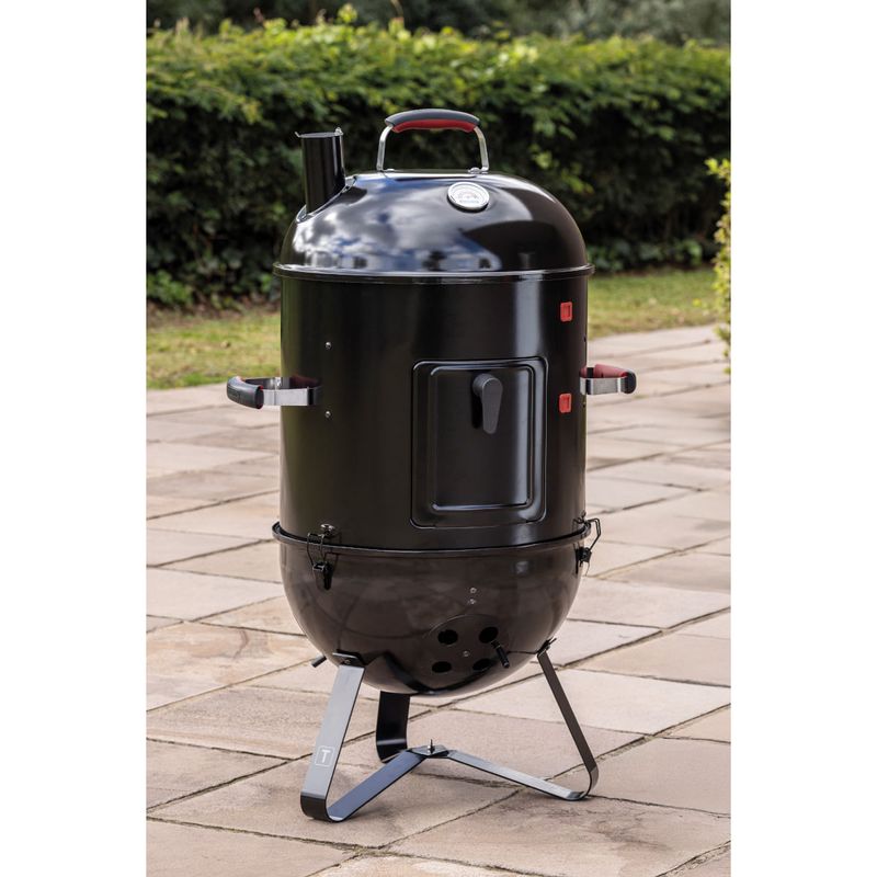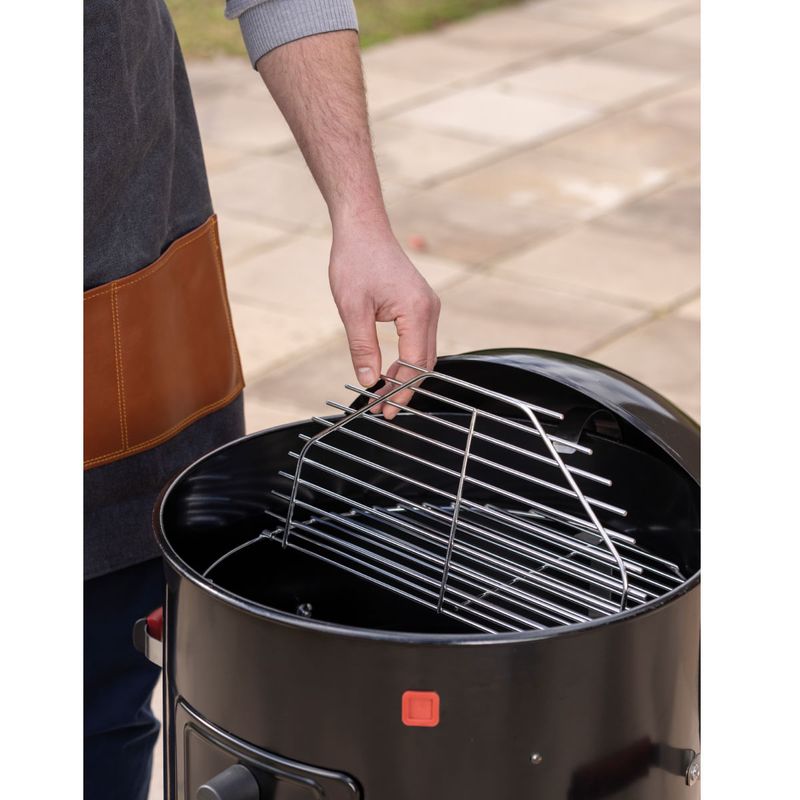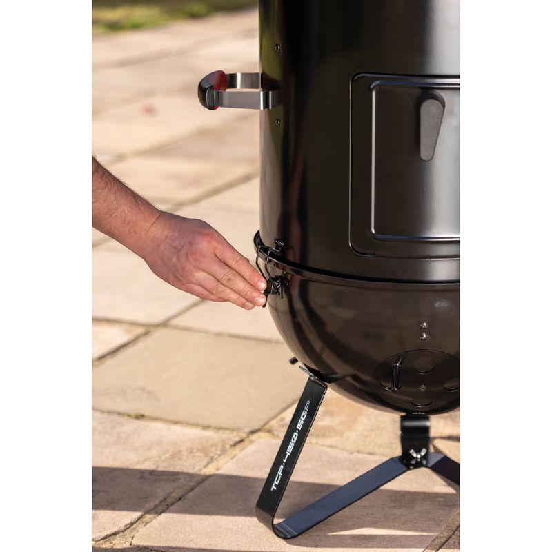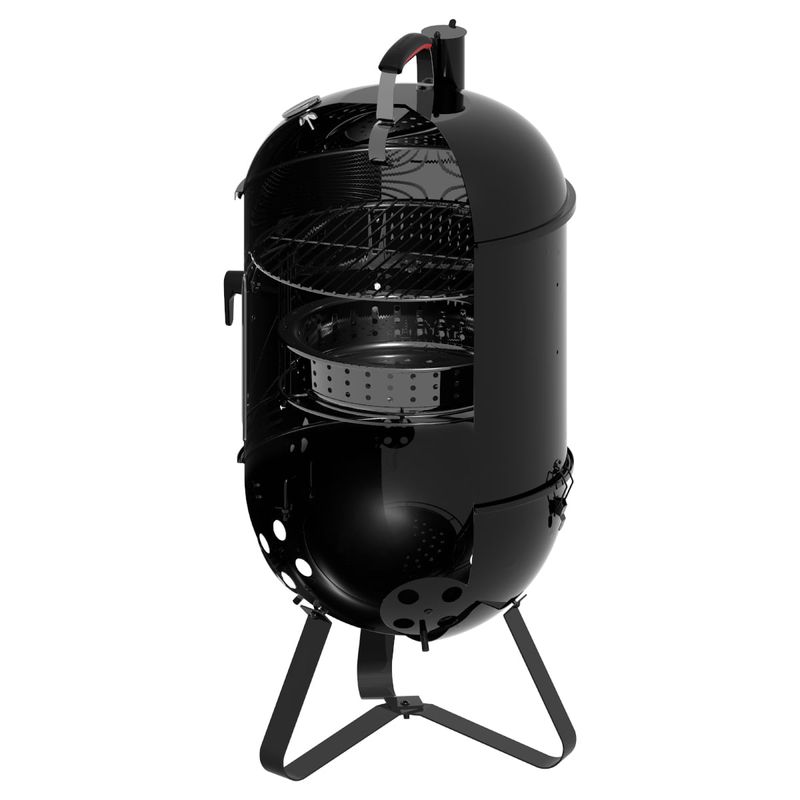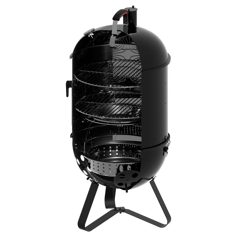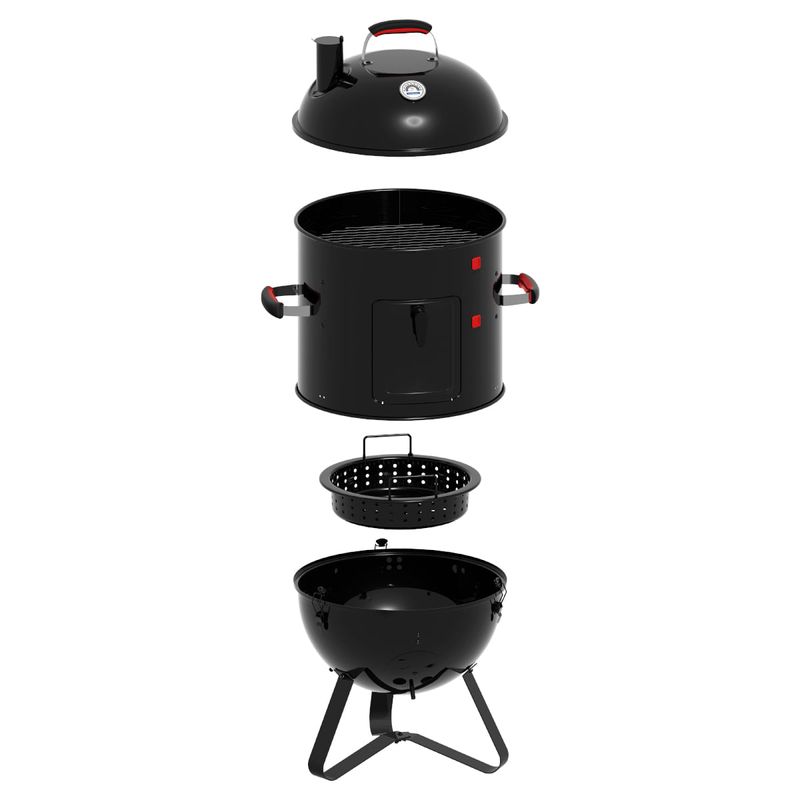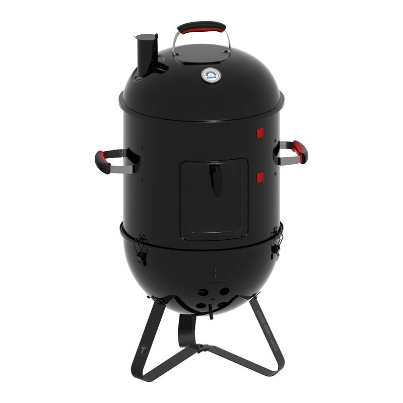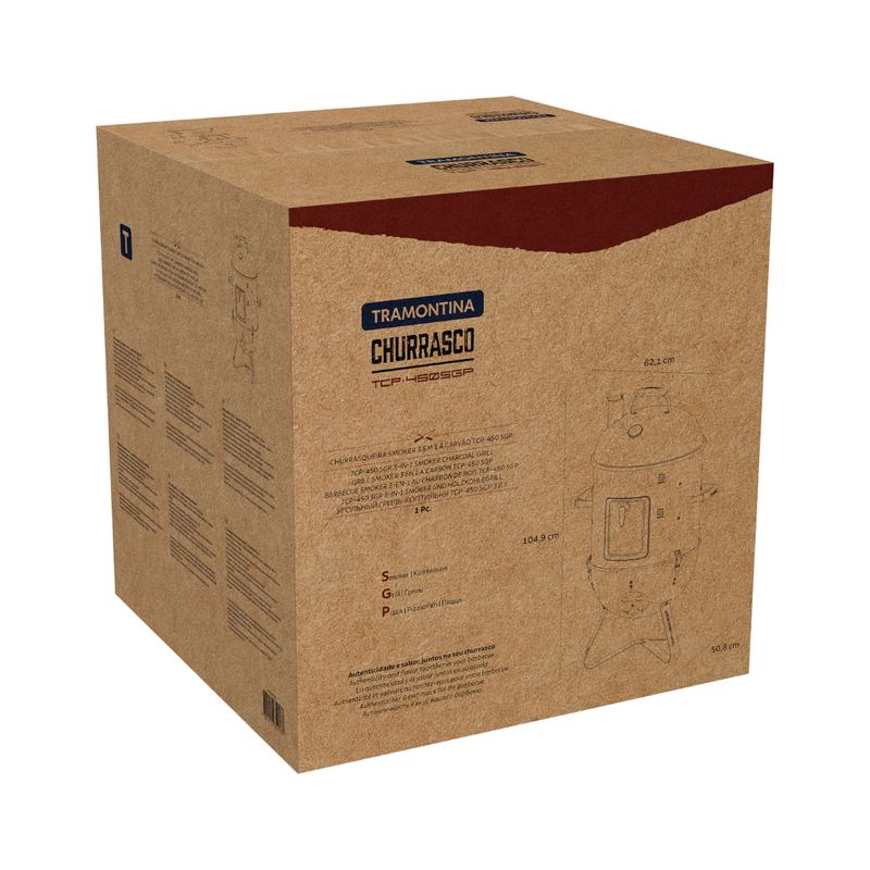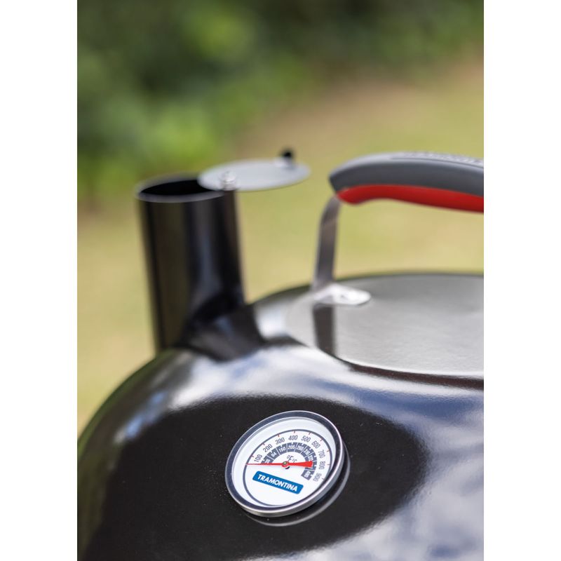 Com a churrasqueira a carvão Tramontina Smoker TCP-450 3 em 1 preparar churrascos cheios de sabor se torna ainda mais prático e versátil. Produzida com corpo e tampa em aço esmaltado, ela garante resistência e durabilidade, além de contar com grelha e pernas em aço inox, que proporcionam estabilidade e facilitam a limpeza. O grande diferencial está no sistema 3 em 1, que permite assar, grelhar e defumar, oferecendo diferentes formas de preparo em um único produto. A tampa conta com termômetro integrado, possibilitando o controle da temperatura interna para atingir o ponto ideal dos alimentos, além de entradas de ar laterais que mantêm a oxigenação do braseiro e asseguram a intensidade do fogo. Com design funcional e completo, a Smoker TCP-450 garante carnes macias, suculentas e defumadas para aproveitar em qualquer ocasião.