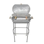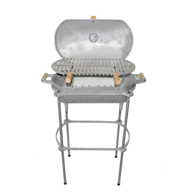 Churrasqueira Alumínio Fundido a Bafo Prata Pé e Suporte Churrasqueira a bafo de alumínio fundido, com grelha de alumínio fundido e alça de madeira, conta também com chaminé na tampa superior para saída de fumaça, que pode ser fechada. Portátil e compacta, ideal para camping, bares, barcos, apartamentos, varandas, cozinhas e áreas de lazer em grande ou pequeno espaço, possui um rápido aquecimento que proporciona economia de carvão. Exclusivo mecânismo para fechamento da chaminé. Especificações Técnicas Churrasqueira: Comprimento Total ( Alça a Alça ): 59cm. Altura do Fundo até a Grelha: 15cm. Comprimento da Grelha: 47cm. Largura Churrasqueira: 27cm. Altura Churrasqueira: 30cm. Largura da Grelha: 26cm. Peso: 5,800Kg. Especificações Técnicas do Pé: Altura Total Pé e Churrasqueira: 90cm. Altura Somente do Pé: 74cm. Peso: 2,200Kg. Itens Inclusos: 01 Churrasqueira Alumínio Fundido Grosso a Bafo Cinza Pé e Suporte. 01 Pé Suporte da Churrasqueira. Código: 01555.PRATA+PÉ.