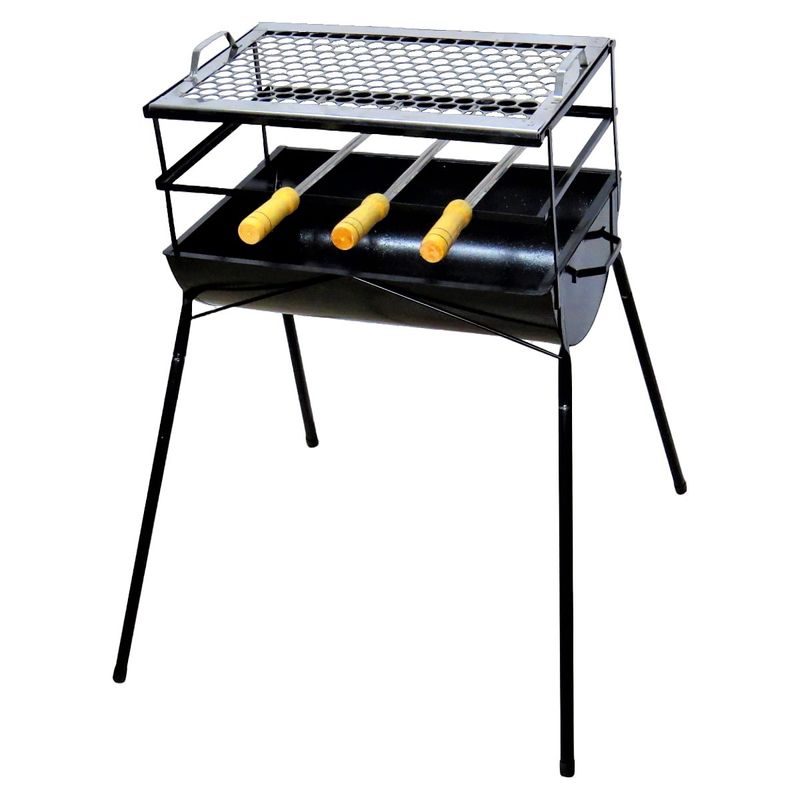 Churrasqueira Espetinho e Pé AB 1 Grelha 3 Espeto 83x44x30cm A churrasqueira é o principal utensílio culinário utilizado nos churrascos. É um tipo de fogão em que toda a superfície superior é uma grelha colocada sobre uma fonte de fogo aberto, que pode ser lenha, carvão vegetal (o mais comum). É ideal para assar frango, carnes, aves e peixes. Projetada para ambientes externos e internos como quintais, camping, áreas de piscina, praias, varandas entre outros. Leve, Prática para transportar, guardar e limpar. Especificações Técnicas:Material Churrasqueira: Aço Carbono.Material dos Espetos: Aço Inox. Material Grelha: Aço Inox. Comprimento: 44cm.Largura: 30cm.Altura: 83cm.Peso: 3,42Kg. Itens Inclusos:01 Churrasqueira Espetinho e Pé AB 1 Grelha 3 Espeto 83x44x30cm. Código: F009FOM. ProdutoLojaPlast.