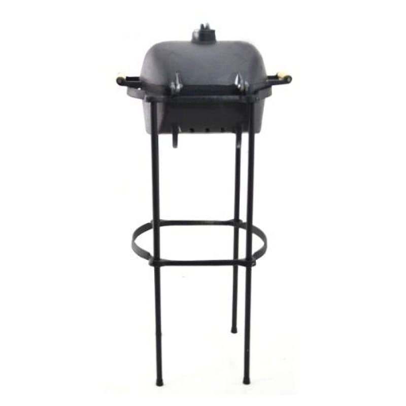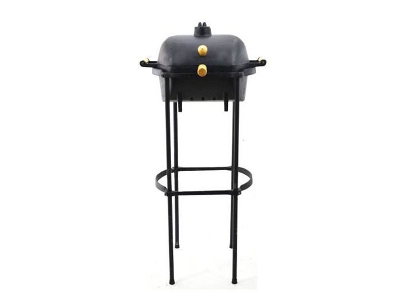 Churrasqueira Média Bafo Alumínio Craqueada Preta Com Pé SuportePara Utilizar em qualquer lugar. Com Grelha de alumínio com cabo e batoque de madeira, bem como, chaminé que pode ser fechada, na tampa superior para saída de fumaça. Não faz fumaça nem sujeira e cabe em qualquer lugar. Exclusiva pintura craqueada, churrasqueira toda preta. Exclusivo mecanismo para fechamento da chaminé.Portátil e compacta. Ideal para camping, bares, barcos, apartamentos. varanda, cozinha, e área de lazer em grande ou pequeno espaço.Possui um rápido aquecimento que proporciona economia de carvão.Dimensões da churrasqueira:Comprimento sem alças: 31,5cmComprimento total com alça: 42cmAltura: 29cmPeso: 3,8kgDimensão do pé suporte, altura: 74cmComprimento: 35cmLargura: 29cmItens Inclusos:01 Churrasqueira a bafo de alumínio fundido Craqueada cor Preta01 Pé Suporte para churrasqueira