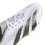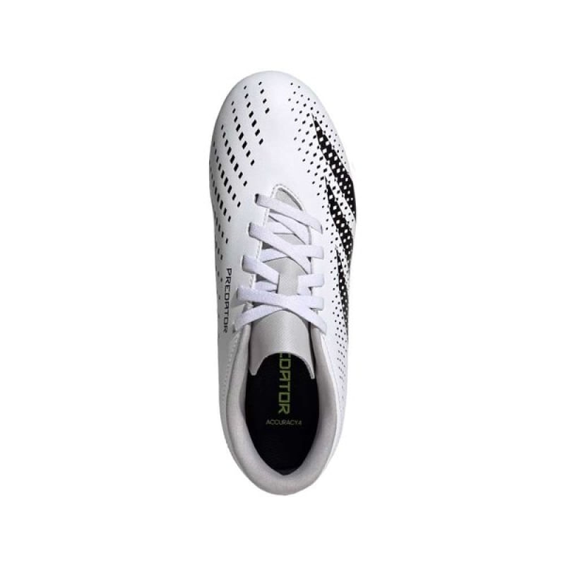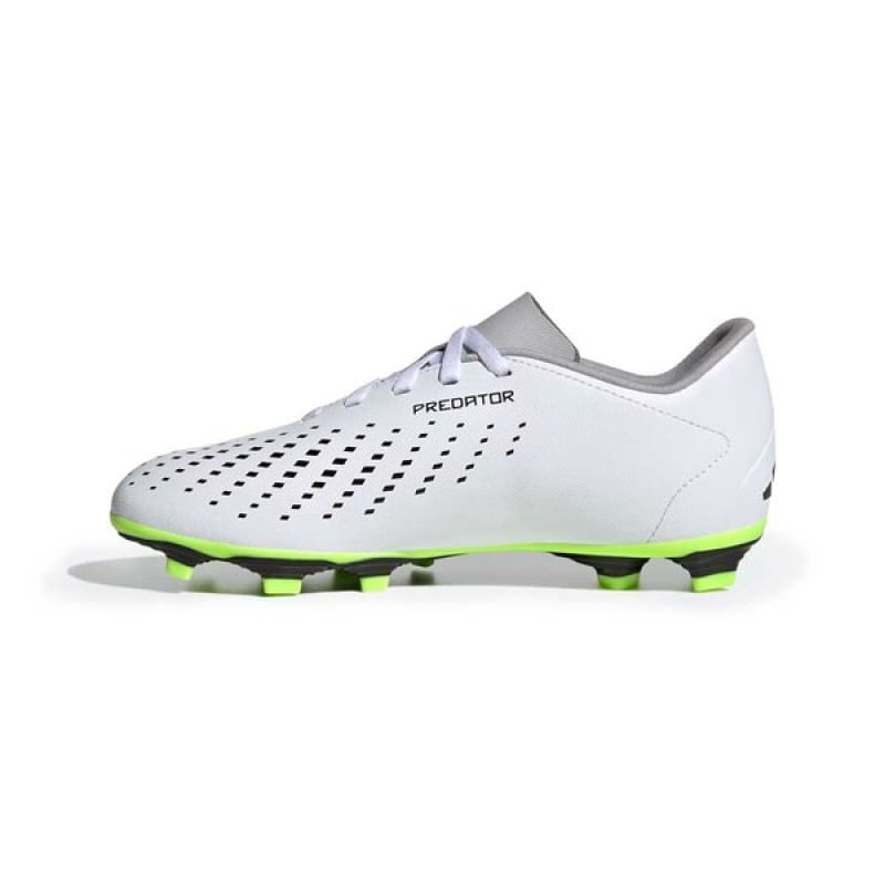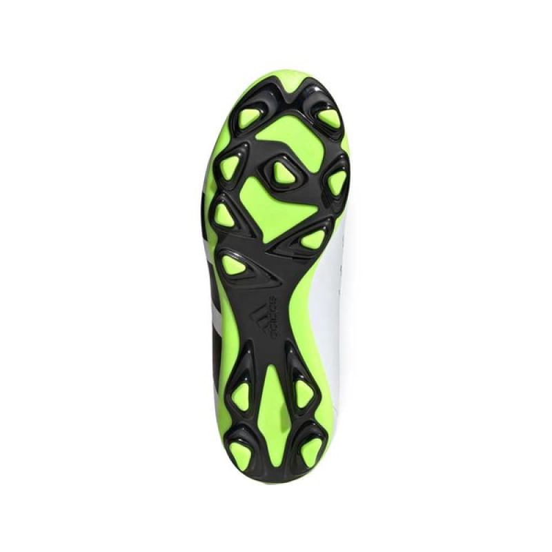 Jovem, domine as partidas dentro de campo com a Predator Accuracy.4 Flexible Ground. Quando o objetivo estiver na sua mira, busque a perfeição com a adidas Predator Accuracy. O cabedal sintético confortável desta chuteira tem um acabamento levemente texturizado e lateral em malha elástica, mantendo você refrescado nos jogos rápidos. O solado foi desenvolvido para manter a estabilidade em diversas superfícies, incluindo campos gramados, superfícies duras e society. Seu design é moderno, predominante na cor branca e detalhes em preto e cinza, além do solado em verde e preto. Não perca tempo e garanta já sua chuteira Adidas! Nome: Chuteira Adidas Predator Accuracy.4 Flexible Ground JuvenilOrigem: NacionalGênero: JuvenilMaterial Cabedal: Sintético texturizadoMaterial Forro: Têxtil, com reforço acolchoado.Cor: BrancoIndicado para: Campo e SocietySolado: BorrachaPalmilha: EVA removível.Peso: 330g (Referente ao par n°30) Garantia do fabricante: contra defeito de fabricação Características Gerais do Produto: • Gênero: Juvenil • Cor: Branco • Indicado para: Futebol de Campo Garantia: • 30 dias após o recebimento do produto