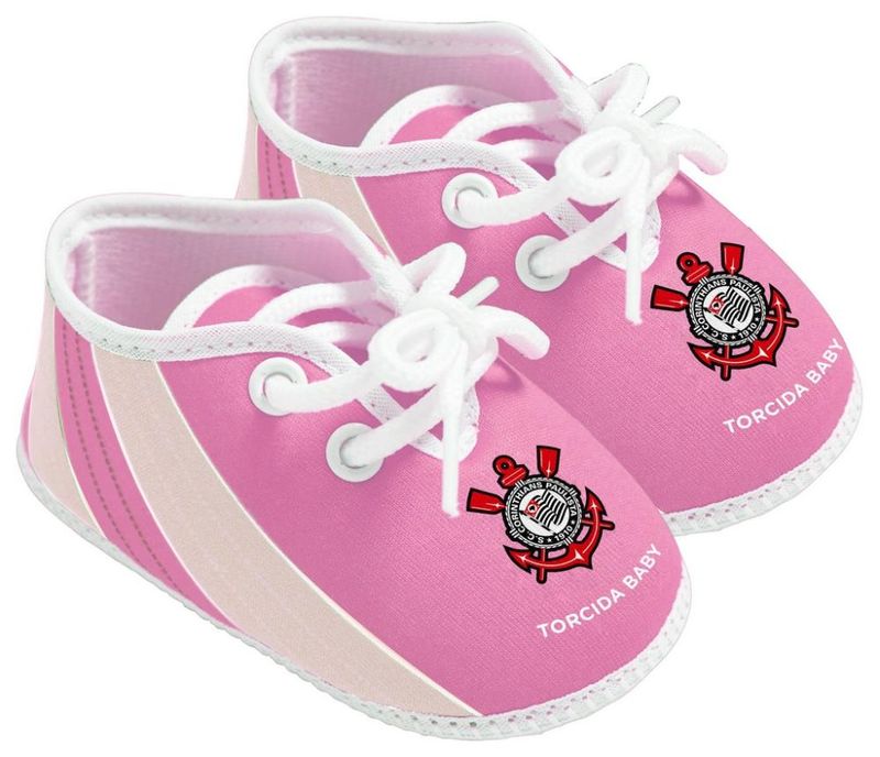 Chuteira Bebê Corinthians Rosa Torcida Baby Essa linda chuteira vai deixar o seu bebê com muito estilo para torcer para o todo poderoso Timão. Ela é composta 100% de algodão antialérgico, tem elasticidade da sola e ainda vem com o escudo do time na parte frontal da chuteira. O pezinho de seu bebê estará protegido e o papai vai ficar cheio de orgulho! Produto Oficial e Licenciado! Medidas: Tamanho P (indicado para 0-3 meses): SOLA DE TECIDO 9,5 cm Tamanho M (indicado para 3-6 meses): SOLA DE TECIDO 10 cm Tamanho G (indicado para 6-9 meses): SOLA DE TECIDO 10,5 cm Tamanho GG (indicado para 9-12 meses): SOLA DE TECIDO 11,5 cm