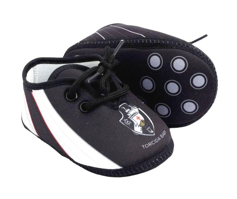 Chuteira Bebê Vasco - Torcida Baby Essa linda chuteira vai deixar o seu bebê com muito estilo para torcer para o Vascão. Ela é composta 100% de algodão antialérgico, tem elasticidade da sola e ainda vem com o escudo do time na parte frontal da chuteira. O pezinho de seu bebê estará protegido e o papai vai ficar cheio de orgulho! Produto Oficial e Licenciado! Medidas: Tamanho P (indicado para 0-3 meses): SOLA DE TECIDO 9,5 cm Tamanho M (indicado para 3-6 meses): SOLA DE TECIDO 10 cm Tamanho G (indicado para 6-9 meses): SOLA DE TECIDO 10,5 cm Tamanho GG (indicado para 9-12 meses): SOLA DE TECIDO 11,5 cm