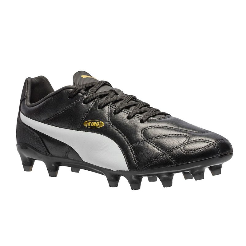 Descrição:Passe a ser o rei dos gramados com a Chuteira Campo Puma King FG BDP. Seu cabedal de qualidade produzido em couro é durável e confortável. O produto possui fechamento por cadarço, auxiliando o ajuste aos pés. A palmilha removível é ideal para a higienização. Solado em TPU com travas posicionadas estrategicamente para mais tração e força nos gramados. Design elegante em uma vibe clássica na cor predominante preta e a icônica faixa Formstrip em branco. Detalhes da marca em dourado. Referência: 106455.