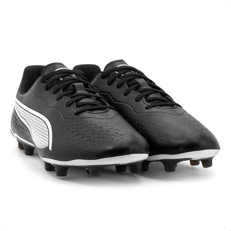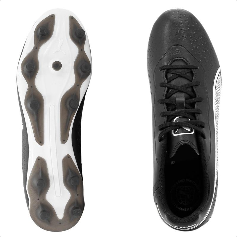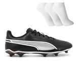 Chuteira Campo Puma King Match FG/AG MasculinoEste é um produto original Puma com garantia vendido pela B2 Online.Controle de bola nunca foi tão confortável. Um ícone que resistiu ao teste do tempo por várias gerações, a chuteira KING retorna municiada com um design atraente e materiais inovadores que beneficiam tanto o jogador quanto o planeta.Isso inclui o novíssimo cabedal K-BETTER™, que reduz o impacto ambiental com conteúdo reciclado, ao mesmo tempo em que oferece uma sensação de conforto e elasticidade característicos.A sola leve com contraforte do calcanhar externo,estabilizador e travas cônicas proporcionam total liberdade de movimento para manter o controle da bola.Material:• Gênero: Masculino• Indicado para Futebol de campo• Feito com material siintético• Modelo com cadarço para melhor ajuste no pé.• NacionalFoto do produto condiz com a realidade. Não existe variação significativa de cor entre o produto real e a foto. Edição realizada em programa gráfico para aproximar ao máximo a foto à cor real do produto.Acompanha: 3 Pares de meia, de cores sortidas. Tamanho dos números 34 ao 38, 39 ao 43, enviados correspondentes ao tamanho selecionado.Composição das Meias: 43% algodão / 55% Poliester / 2% elastanoNúmero do Pé que a Meia Calça: Tamanho dos Números 34 ao 38, 39 ao 43