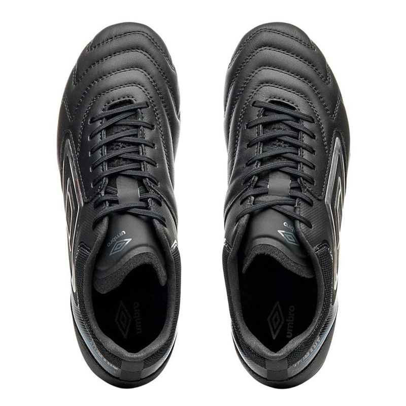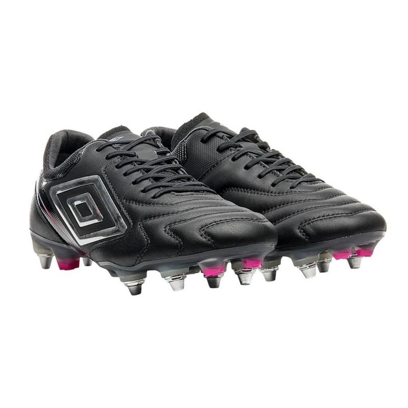 Descrição:Alto rendimento com ajuste firme e sensibilidade de bola: a Chuteira Campo Umbro Adamant Master Class Pro SG combina couro premium nas áreas de contato, meia de knit compressiva e configuração de travas mistas (com removíveis em alumínio) para tração, estabilidade e resposta em gramados naturais macios. INFORMAÇÕES TÉCNICAS: - Categoria: Campo (SG) - Ajuste: Meia de knit + cadarço - Cabedal: Couro Napa Premier com reforço fusionado - Lingueta: Knit ultraleve - Forro: Têxtil (poliéster) - Palmilha de montagem: Injetada em Pebax (reforço no enfranque) - Solado: SG em Pebax com 13 travas mistas (6 removíveis de alumínio) - Palmilha interna: EVA - Gênero: Unissex TECNOLOGIA: - Couro Napa Premier: toque macio, alta durabilidade e excelente sensibilidade no controle de bola. - Knit compressivo: meia integrada e lingueta em malha estruturada para encaixe seguro, respirabilidade e estabilidade. - Pebax: polímero leve e responsivo na base e na palmilha de montagem, oferecendo retorno de energia e rigidez torsional equilibrada. - Travas mistas SG: 13 travas com 6 removíveis em alumínio para aderência superior em gramados naturais macios e úmidos, facilitando arrancadas e mudanças rápidas de direção.