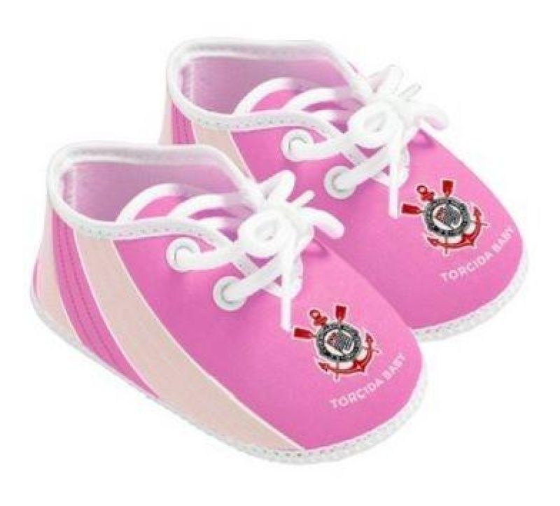 Chuteira Bebê Corinthians Rosa Torcida Baby Essa linda chuteira vai deixar o seu bebê com muito estilo para torcer para o todo poderoso Timão. Ela é composta 100% de algodão antialérgico, tem elasticidade da sola e ainda vem com o escudo do time na parte frontal da chuteira. O pezinho de seu bebê estará protegido e o papai vai ficar cheio de orgulho! Produto Oficial e Licenciado! Medidas: Tamanho P (indicado para 0-3 meses): SOLA DE TECIDO 9,5 cm Tamanho M (indicado para 3-6 meses): SOLA DE TECIDO 10 cm Tamanho G (indicado para 6-9 meses): SOLA DE TECIDO 10,5 cm Tamanho GG (indicado para 9-12 meses): SOLA DE TECIDO 11,5 cm