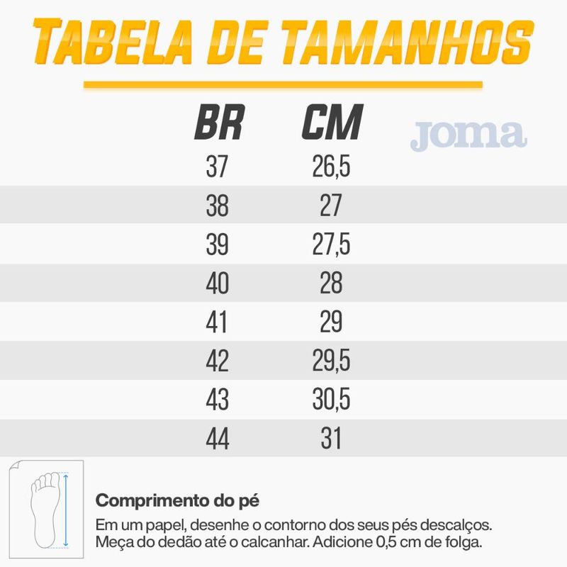 A chuteira de society Joma Liga 5 é muito boa e um excelente custo benefício para jogar society.Uma chuteira confortável e com bom preço.Fabricado para prática de alta performance, combinando flexibilidade com bom ajuste aos pés e estabilidade.É flexível até o momento que o jogador precisa de estabilidade.Essa chuteira de futebol de salão oferece conforto, respirabilidade e suporte para garantir uma ótima performance durante a partida.Perfil: Chuteira society.- Cabedal: Fabricado em coouro natural extremamente flexível e de excelente qualidade.- Construído com náilon de alta qualidade na parte interior com resistência a tração.- Reforço em camurça na parte frontal e na parte traseira para maior durabilidade e proteção da estrutura.- Reforço em borracha na biqueira para maior potência no chute.- Solado: Em borracha de excelente qualidade e abrasão DIN-70, escala Europeia que significa alta durabilidade da sola e resistência à desgaste- Detalhamento: Fechamento convencional em cadarço, lingueta macia em mesh, logo Joma na lingueta e no calcanhar, logo Joma na lateral externa, perfurações em pontos estratégicos para maior respirabilidade, reforços na parte frontal para maior resistência e estabilidade, design moderno;Acompanha: 3 Pares de meia, de cores sortidas. Tamanho dos números 34 ao 38, 39 ao 43, enviados correspondentes ao tamanho selecionado.Composição das Meias: 43% algodão / 55% Poliester / 2% elastanoNúmero do Pé que a Meia Calça: Tamanho dos Números 34 ao 38, 39 ao 43