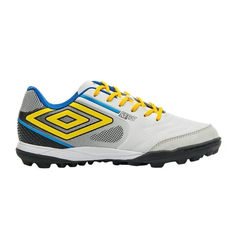 As partidas de futebol society ficaram ainda mais emocionantes com a chuteira Pro 5 Bump Club da Umbro. Seu solado de borracha possui a tecnologia 360° Zone, que assegura rápidas mudanças de direção. Além disso, a parte superior do calçado é feita de material sintético e camurça, com entressola em EVA e palmilha removível.