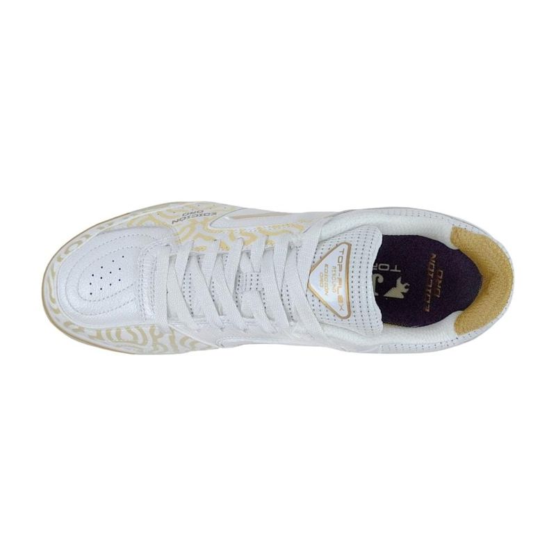 DescriçãoChuteira Joma Top Flex Rebound Edição Oro FutsalA Chuteira Joma Top Flex Rebound – Edição Oro combina tecnologia avançada, conforto e estabilidade, além de um visual exclusivo que faz você se destacar nas quadras. Desenvolvida para jogadores que exigem alto desempenho em cada partida.Principais benefícios: Solado com sistema de amortecimento, que absorve impactos de corridas, saltos e mudanças de direção, auxiliando na prevenção de lesões Sistema de amarração eficiente, com design que mantém os pés firmes e evita deslizamentos Biqueira reforçada, oferecendo maior proteção contra impactos e excelente durabilidade Cabedal em couro, garantindo melhor controle de bola, chutes mais precisos e dribles mais eficientes Edição Oro exclusiva, com acabamento diferenciado para quem quer se destacar Cadarço reserva na cor dourada, agregando estilo e praticidadeResistente, confortável e imponente, é a chuteira ideal para quem busca excelência e alto rendimento no futsal.Garanta já a sua Chuteira Joma Top Flex Rebound Edição Oro e domine as quadras com estilo.Modelo: Top Flex Rebound Ed. Oro;Cor: Branco/Dourado;Gênero: Unissex;Marca: Joma;Tecnologias: Piel, Protection, Reactive, Flexo;Composição: Couro;Tipo de Pisada: Neutra.Tabela de MedidasComprimento aproximado da palmilha interna: Tamanho 37: 26 cm;Tamanho 38: 26,5 cm;Tamanho 39: 26 cm;Tamanho 40: 27 cm;Tamanho 41: 27,5 cm;Tamanho 42: 28,25 cm;Tamanho 43: 29 cm;Tamanho 44: 29,5 cm;