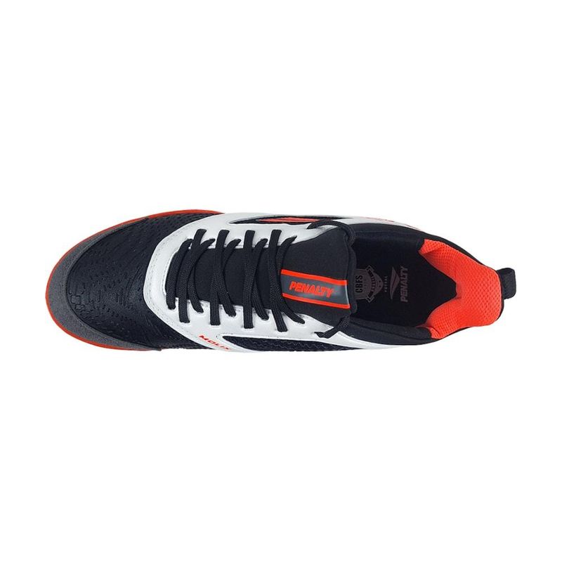 DescriçãoA Chuteira Futsal Penalty Max Evolution foi desenvolvida para jogadores que buscam velocidade, precisão, conforto e durabilidade dentro das quadras. Fabricada com materiais de alta qualidade e equipada com diversas tecnologias de última geração, ela garante performance superior em treinos intensos e partidas competitivas.Sua entressola conta com a tecnologia Neo Cushion, que proporciona rápida absorção de impactos, trazendo mais segurança e conforto a cada passo, giro e chute. O cabedal é leve, flexível e resistente ao desgaste graças às tecnologias 360° e Termotec, que reforçam a estrutura e prolongam a vida útil da chuteira.A parte superior incorpora a tecnologia Locker Evo, oferecendo ajuste semelhante ao de uma meia, que envolve o pé com firmeza e evita escorregamentos durante movimentos rápidos. Para maximizar o desempenho nas quadras, o solado conta com Ultra Grip e Stabilok, sistemas que entregam aderência, tração e estabilidade, essenciais para mudanças bruscas de direção.Além disso, a tecnologia Non-Marking impede que o solado deixe marcas na quadra, mantendo o ambiente limpo e preservado. A palmilha em EVA garante conforto adicional durante toda a partida, reduzindo o impacto e oferecendo suavidade no contato com o piso.A Penalty Max Evolution é a escolha ideal para jogadores que levam o futsal a sério e exigem o melhor em tecnologia, desempenho e liberdade de movimento.Modelo: Max Evolution Locker;Cor: Branco/Cinza;Gênero: Unissex;Marca: Penalty;Tecnologia: Non-Marking, Termotec, Molix 360°, Locker Evo, Neo Cushion, Ultra Grip e Stanilok;Composição: Sintético, Borracha e EVA;Tipo de Pisada: Neutro;Tabela de MedidasComprimento aproximado da palmilha interna:Tamanho 35: 23 cm;Tamanho 36: 23,5 cm; Tamanho 37: 24,5 cm;Tamanho 38: 25 cm;Tamanho 39: 25,5 cm;Tamanho 40: 26,5 cm;Tamanho 41: 27,5 cm;Tamanho 42: 28 cm;Tamanho 43: 29 cm;Tamanho 44: 29,5 cm;