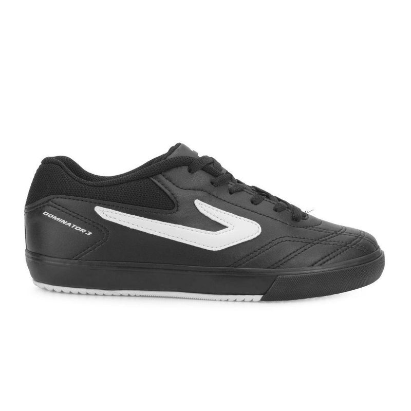 Nome: Chuteira Futsal Topper Dominator III Juvenil. Gênero:Menino. Indicado para: Esporte Futebol Indoor - Futsal. Estilo da Peça: Chuteira Futsal. Composição: Material sintético com costuras reforçadas. Material Interno: Têxtil almofadado. Ajuste: Cadarço. Solado:Em borracha com ranhuras específicas para futebol em quadras. Palmilha: EVA forrada e removível. Peso do Produto: 682 g ( o peso varia de acordo a numeração). Garantia do Fabricante: Contra defeito de fabricação. Origem:Nacional. Código Produto: 01230735.