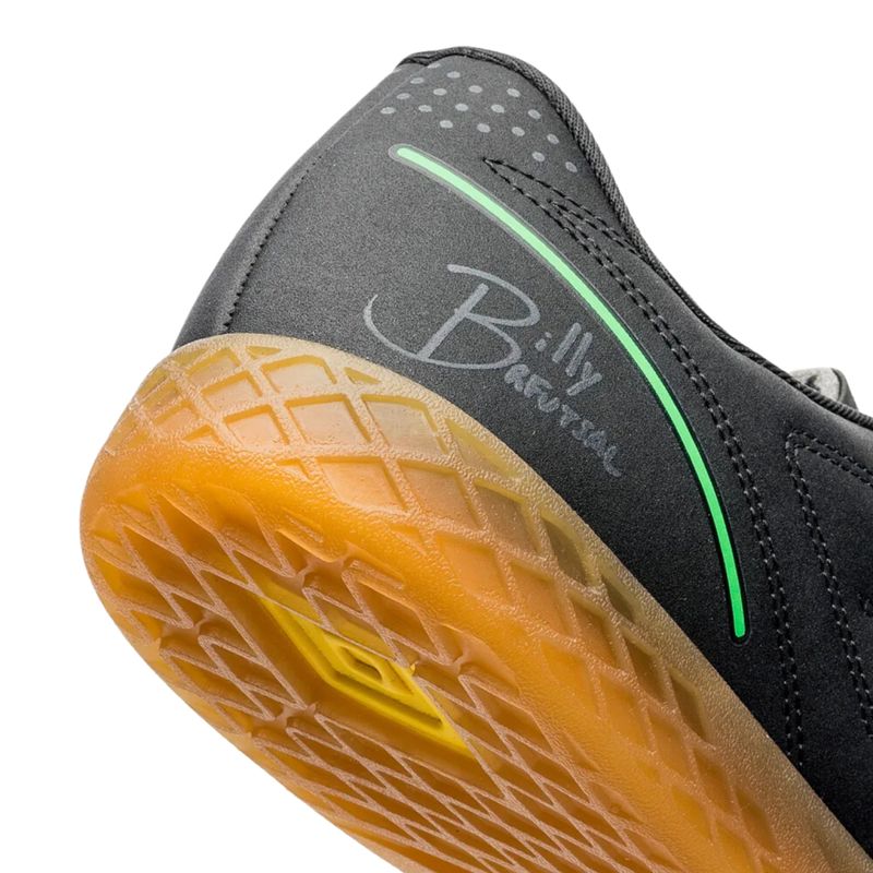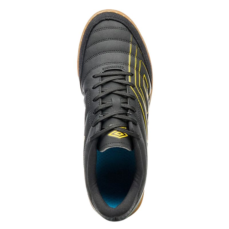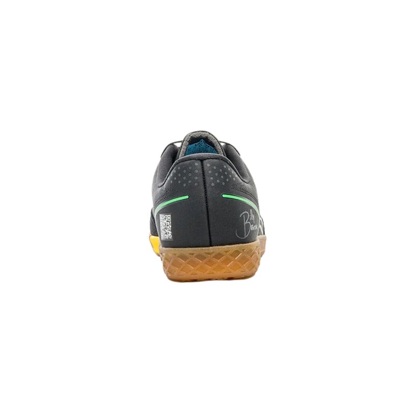 Cabedal confeccionado em material laminado nobucado, com biqueira de microfibra suede e costura programada de reforço na área de flexão. A arte gráfica é exclusiva com Diamante Outline em destaque na lateral externa, logo BRFUTSAL na parte traseira. A nova palmilha interna, com a tecnologia SOFT BLUE, é conformada anatomicamente em EVA super macio e conta com pontos de reforço nas zonas de maior pressão, traços horizontais nas áreas de maior flexão e texturas conformadas para garantir mais conforto e grip no pé.