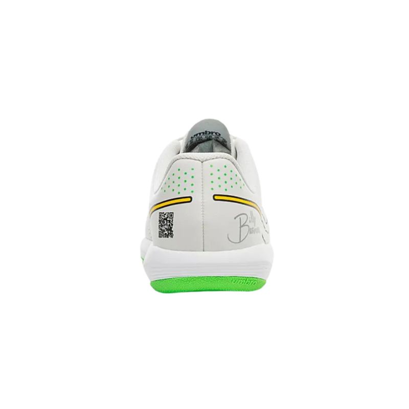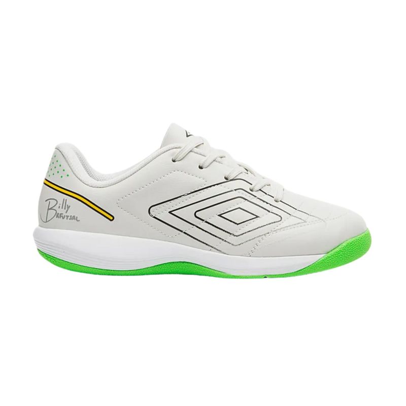 A Chuteira Oficial dos Pequenos Craques do BR Futsal! Umbro e Billy Juntos nas Quadras! Prepare-se para ver a garotada brilhar com a Chuteira de Futsal Umbro BR Futsal Jr.! Fruto da parceria explosiva entre a Umbro e o fenômeno Billy do BR Futsal, esta chuteira é a combinação perfeita de bem-estar, design exclusivo e resistência imbatível para os jovens talentos do futsal. Desenvolvida para a performance e o estilo dos futuros craques: Conforto e Durabilidade: O cabedal em material emborrachado oferece conforto excepcional e a resistência necessária para aguentar o ritmo acelerado das partidas. Resistência Extra: As costuras fortificadas garantem a durabilidade da chuteira, acompanhando os pequenos em todos os dribles e chutes. Estilo Único BR Futsal: A estampa singular inspirada no canal BR Futsal vai destacar os pequenos craques nas quadras com um visual cheio de atitude. Conecte-se com o Ídolo: Um QR Code exclusivo na chuteira direciona diretamente para o perfil oficial do BR Futsal no Instagram! A garotada estará mais perto do Billy e de todo o universo do futsal. Segurança e Agilidade: O solado de borracha com propriedade antiderrapante oferece a tração ideal para movimentos rápidos e seguros em todas as superfícies de futsal, permitindo dribles e passes precisos. Conforto Interno: O forro em poliéster proporciona uma sensação agradável e o acolchoamento interno garante o bem-estar durante toda a partida. Amortecimento Ideal: A palmilha em EVA e poliéster oferece o amortecimento necessário para proteger os pés dos pequenos impactos. Composição de Craque: Cabedal: 100% Sintético (conforto e durabilidade). Forro: 100% Poliéster (conforto interno). Palmilha: 90% EVA, 10% Poliéster (amortecimento). Sola: 60% EVA, 40% Borracha (leveza, amortecimento e antiderrapante). A hora de brilhar nas quadras chegou! Com a Chuteira de Futsal Umbro BR Futsal Jr., os pequenos craques terão o conforto, o estilo e a resistência que precisam para dominar o jogo. Clique em "Comprar Agora" e prepare-se para ver a magia acontecer!