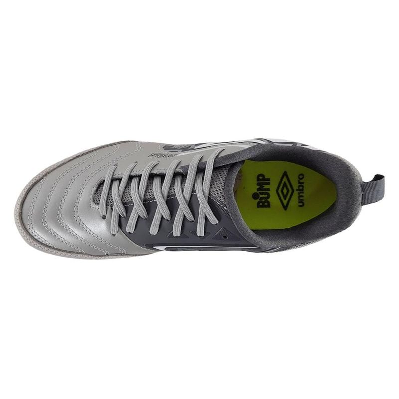 DescriçãoA Chuteira Futsal Umbro Pro 5 Bump Profissional Unissex é perfeita para as craques que procuram conforto e qualidade para melhorar seu jogo. Cabedal é assimétrico, construído em couro natural com dupla costura posicionada e biqueira de reforço em camurça na área frontal. Na parte medial e posterior possui combinado de mesh fusionado com laminado em aplique para reforçar e possibilitar maior respirabilidade do pé. Conta com a tecnologia DPS (Dual Pressure System) que consiste em intensificar a sensibilidade do jogador com a bola e proporcionar um maior controle de dribles, passes e finalizações. Possui um solado translúcido em borracha que oferece estabilidade, durabilidade e melhor aderência nas partidas.Modelo: Pro 5 Bump Profissional;Cor: Cinza/Branco;Gênero: Adulto;Marca: Umbro;Tecnologia: DPS;Composição: Cabedal em material sintético e couro; Entressola em EVA; Solado em borracha;Pisada: Neutra;Tabela de MedidasComprimento aproximado da palmilha interna:Tamanho 37: 24,5 cm;Tamanho 38: 25 cm;Tamanho 39: 25,5 cm;Tamanho 40: 26,5 cm;Tamanho 41: 27,5 cm;Tamanho 42: 28 cm;Tamanho 43: 29 cm;Tamanho 44: 29,5 cm;Tamanho 45: 30 cm;Tamanho 46: 30,5 cm;